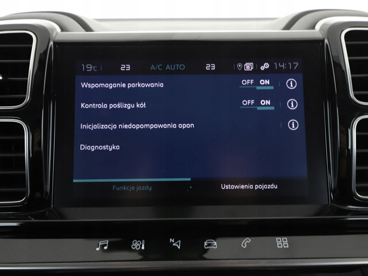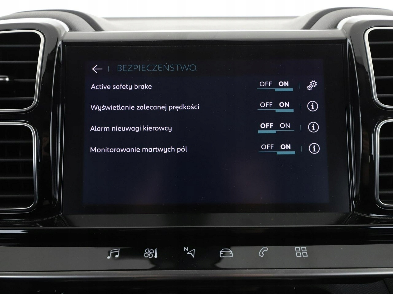 ABS, ASR (kontrola trakcji), Czujniki parkowania tylne, Immobilizer, Asystent pasa ruchu, Czujnik martwego pola, Czujniki parkowania przednie, Poduszka powietrzna kierowcy, Poduszka powietrzna pasażera, Poduszki boczne przednie, ESP (stabilizacja toru jazdy), Isofix, Kamera cofania, Elektryczne szyby przednie, Elektryczne szyby tylne, Elektrycznie ustawiane lusterka, Wielofunkcyjna kierownica, Wspomaganie kierownicy, Tapicerka skórzana, Gniazdo USB, Radio fabryczne, Nawigacja GPS, Centralny zamek, Komputer pokładowy, Tempomat, Łopatki zmiany biegów