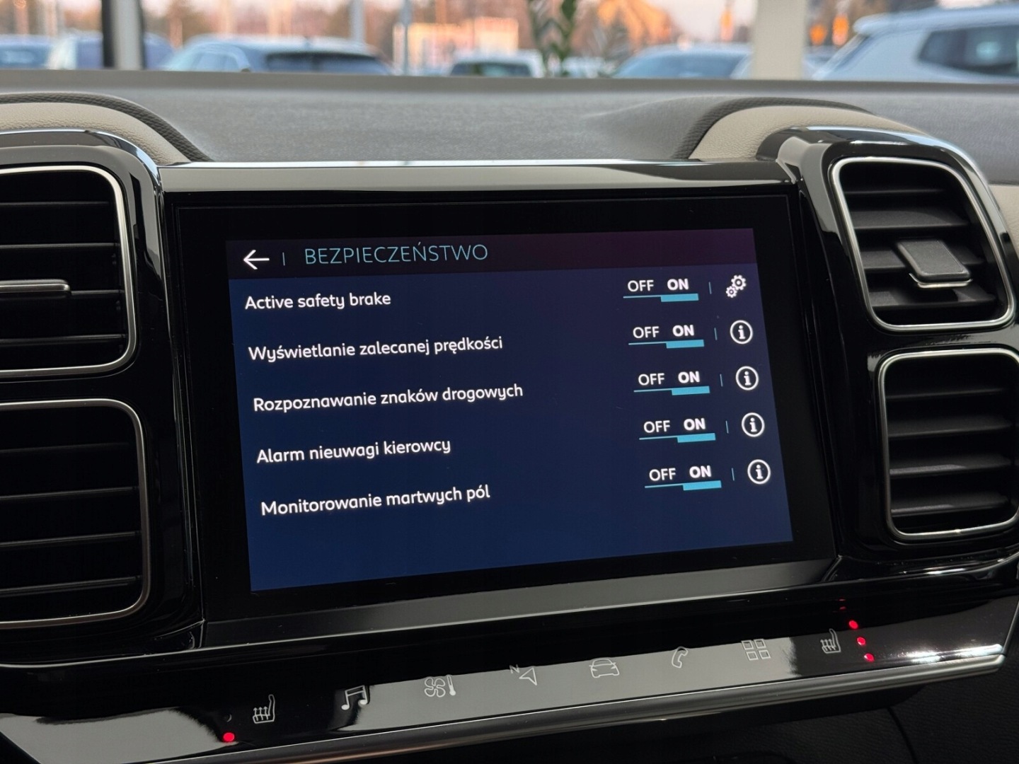 Czujnik deszczu, Czujnik martwego pola, Czujnik zmierzchu, Kamera cofania, Czujniki parkowania przednie, Czujniki parkowania tylne, ABS, Poduszki boczne przednie, ESP (stabilizacja toru jazdy), Isofix, Poduszka powietrzna kierowcy, Poduszka powietrzna pasażera, Elektryczne szyby przednie, Elektryczne szyby tylne, Elektrycznie ustawiane fotele, Podgrzewane przednie siedzenia, Przyciemniane szyby, Elektrycznie ustawiane lusterka, Wspomaganie kierownicy, Bluetooth, Gniazdo USB, Radio niefabryczne, Nawigacja GPS, Łopatki zmiany biegów, Ogranicznik prędkości, System Start-Stop, Tempomat aktywny, Alufelgi
