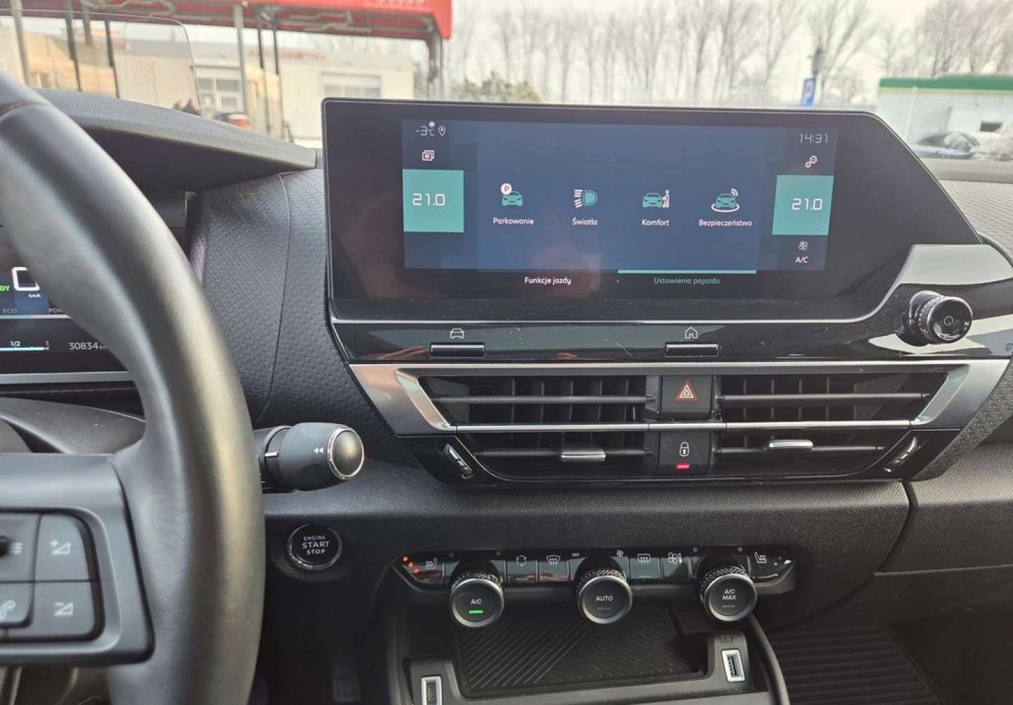 ABS, ASR (kontrola trakcji), Czujnik deszczu, Czujnik martwego pola, Czujnik zmierzchu, HUD (wyświetlacz przezierny), Isofix, Kamera cofania, Kurtyny powietrzne, Poduszki boczne przednie, Poduszki boczne tylne, Elektryczne szyby przednie, Elektryczne szyby tylne, Elektrycznie ustawiane lusterka, Podgrzewana kierownica, Podgrzewane lusterka boczne, Przyciemniane szyby, Tapicerka tekstylna, Wielofunkcyjna kierownica, Wspomaganie kierownicy, Skórzana kierownica, Bluetooth, Gniazdo USB, Nawigacja GPS, Radio fabryczne, Alufelgi, Elektrochromatyczne lusterka boczne, Ogranicznik prędkości