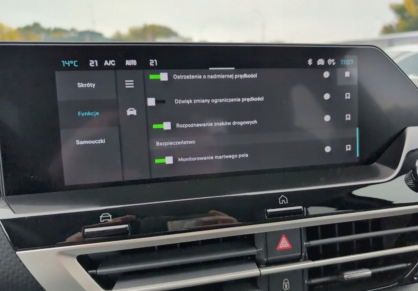 ABS, ASR (kontrola trakcji), Czujniki parkowania tylne, ESP (stabilizacja toru jazdy), Isofix, Kamera cofania, Poduszka powietrzna pasażera, Poduszki boczne przednie, Elektryczne szyby przednie, Elektryczne szyby tylne, Elektrycznie ustawiane lusterka, Podgrzewane lusterka boczne, Przyciemniane szyby, Tapicerka skórzana, Wspomaganie kierownicy, Bluetooth, Gniazdo USB, Nawigacja GPS, Radio fabryczne, Elektrochromatyczne lusterka boczne, Ogranicznik prędkości, System Start-Stop, Tempomat aktywny