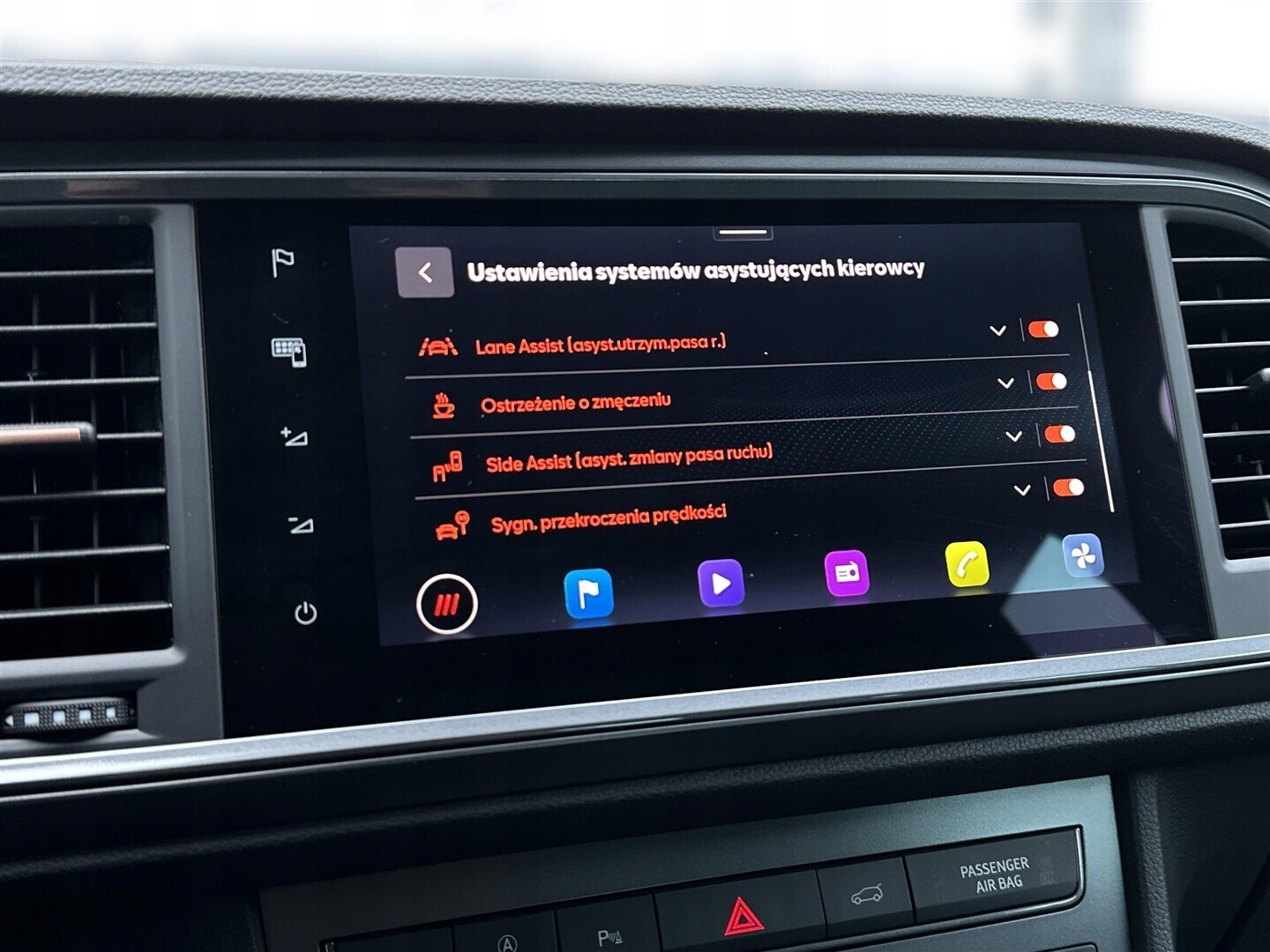 Czujnik deszczu, Czujnik martwego pola, Czujnik zmierzchu, Kamera cofania, Czujniki parkowania przednie, Czujniki parkowania tylne, Asystent parkowania, ABS, ESP (stabilizacja toru jazdy), Isofix, Poduszka powietrzna chroniąca kolana, Poduszka powietrzna kierowcy, Poduszka powietrzna pasażera, Elektryczne szyby przednie, Elektryczne szyby tylne, Podgrzewane przednie siedzenia, Przyciemniane szyby, Tapicerka skórzana, Elektrycznie ustawiane lusterka, Podgrzewane lusterka boczne, Wspomaganie kierownicy, Bluetooth, Gniazdo USB, Radio niefabryczne, Nawigacja GPS, Łopatki zmiany biegów, Ogranicznik prędkości, System Start-Stop, Tempomat aktywny, Alufelgi