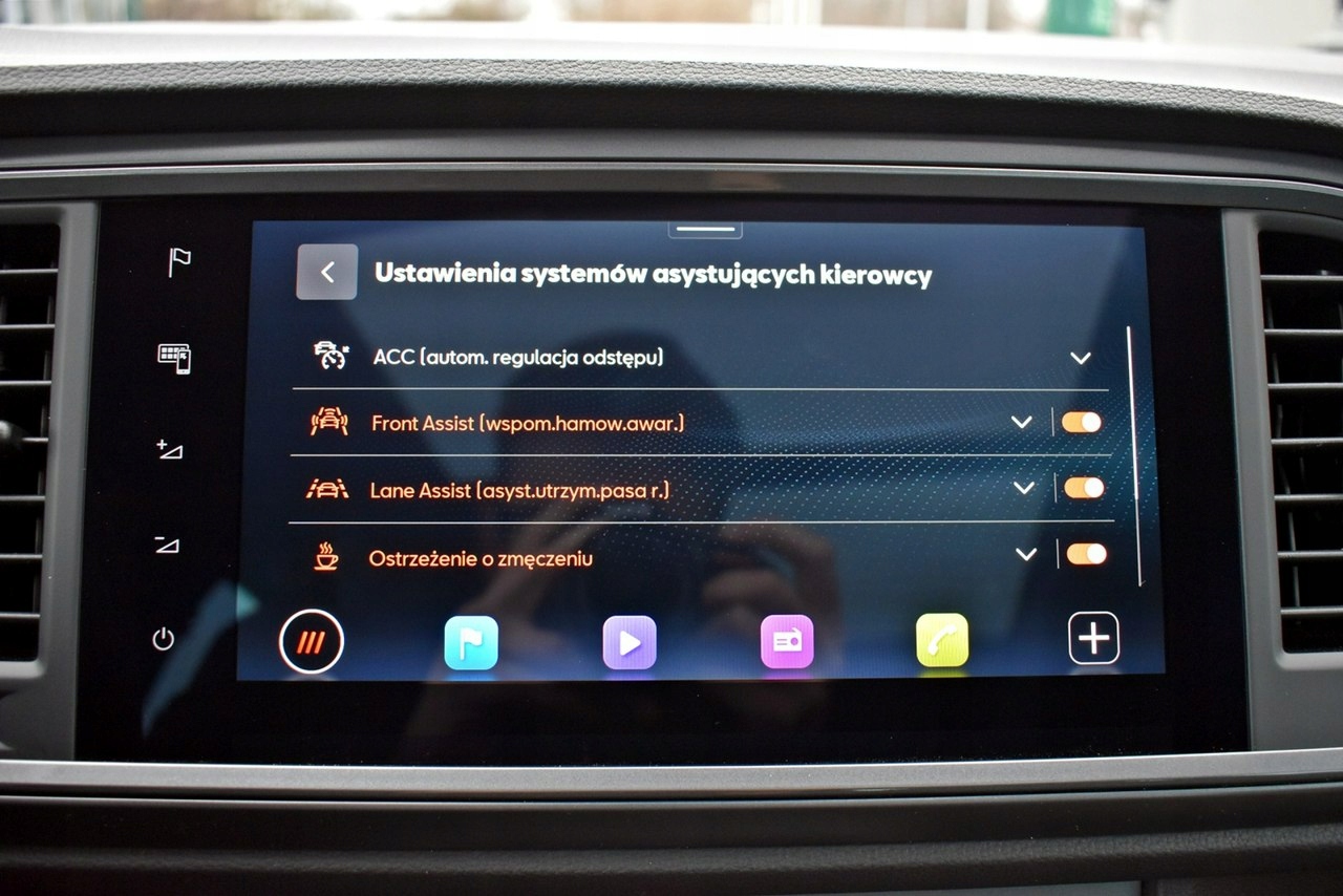 ABS, ASR (kontrola trakcji), Czujnik deszczu, Czujniki parkowania tylne, Immobilizer, Asystent parkowania, Asystent pasa ruchu, Czujnik martwego pola, Czujniki parkowania przednie, Kurtyny powietrzne, Poduszki boczne przednie, Poduszka powietrzna kierowcy, Poduszka powietrzna pasażera, ESP (stabilizacja toru jazdy), Isofix, Kamera cofania, Poduszki boczne tylne, Elektryczne szyby przednie, Elektryczne szyby tylne, Elektrycznie ustawiane lusterka, Podgrzewane przednie siedzenia, Przyciemniane szyby, Wielofunkcyjna kierownica, Wspomaganie kierownicy, Elektrycznie ustawiane fotele, Podgrzewane lusterka boczne, Tapicerka ciemna, Tapicerka skórzana, Bluetooth, Gniazdo USB, Radio fabryczne, Nawigacja GPS, Bezkluczykowy dostęp, Centralny zamek, Komputer pokładowy, Relingi dachowe, Tempomat, Elektrochromatyczne lusterko wsteczne, Ogranicznik prędkości, System Start-Stop, Łopatki zmiany biegów, Tempomat aktywny
