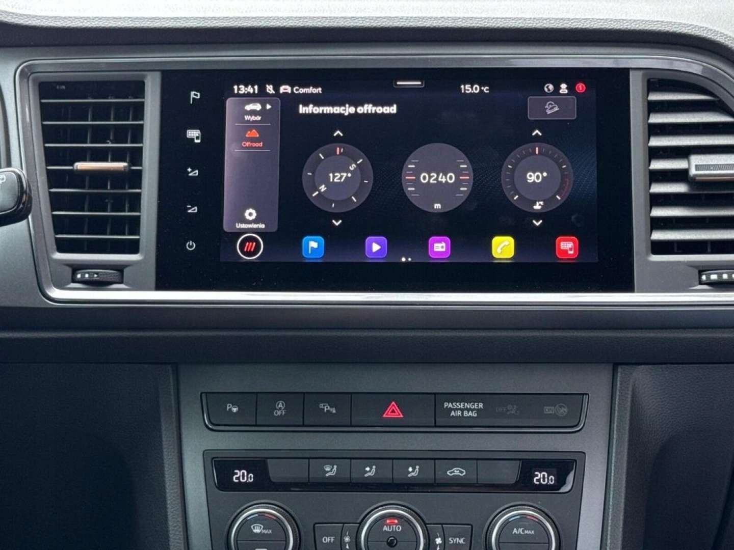 ABS, Asystent parkowania, Czujnik deszczu, Czujniki parkowania przednie, Czujniki parkowania tylne, Czujnik zmierzchu, ESP (stabilizacja toru jazdy), Isofix, Kamera cofania, Kurtyny powietrzne, Elektryczne szyby przednie, Elektryczne szyby tylne, Elektrycznie ustawiane lusterka, Podgrzewana kierownica, Podgrzewane lusterka boczne, Przyciemniane szyby, Tapicerka skórzana, Wielofunkcyjna kierownica, Skórzana kierownica, Bluetooth, Gniazdo USB, Nawigacja GPS, Radio fabryczne, Bezkluczykowy dostęp, Elektrochromatyczne lusterka boczne, Łopatki zmiany biegów, System Start-Stop, Tempomat