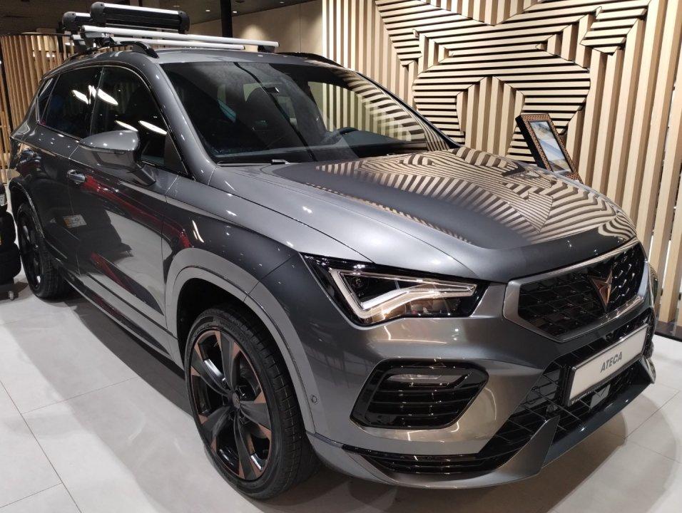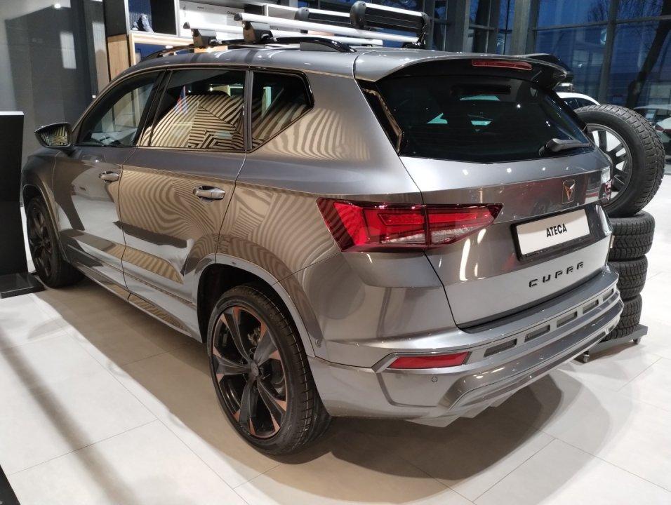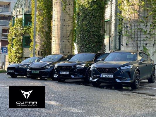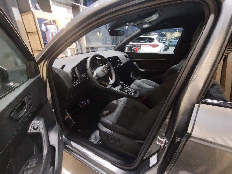 LED, Pakiet praktyczny: Czujnik deszczu; Czujnik zmierzchu (automatyczne światła); Automatyczna funkcja opóźnionego wyłączania świateł "Coming and Leaving Home"; Automatycznie ściemniające się lusterko wsteczne; Automatycznie obniżajace się lusterko pasażera podczas cofania, Podłokietnik z przodu z regulacją wzdłużną i regulacją wysokości oraz zintegrowanym schowkiem z otworami wentylacyjnymi dla drugiego rzędu siedzeń oraz podłokietnik w drugim rzędzie siedzeń, Osłony przeciwsłoneczne kierowcy i pasażera z zamykanymi i podświetlanymi lusterkami, ze schowkiem na karty po stronie kierowcy, Navi System: Nawigacja satelitarna z mapami z możliwością aktualizacji; 9,2-calowy kolorowy ekran dotykowy; Funkcja dynamicznej nawigacji 3D i przeglądania zdjęć i video; Radio z MP3 / WMA; Full Link; 2 podświetlane gniazda USB typu C z przodu i 2 x USB z tyłu do ładowania urządzeń; Rozbudowana funkcja rozpoznawania mowy i sterowania głosem CUPRA CONNECT dla Navi System: Bezpieczeństwo i serwis (subskrypcja na 10 lat); Zdalny dostęp (subskrypcja na 1 rok) Usługi multimedialne online (subskrypcja na 1 rok) - Niektóre usługi multimedialne wymagają wykupienia dodatkowo pakietu transmisji danych. Szczegóły dostępne w podręczniku użytkownika SEAT Connect. Tylne światła LED z dynamicznymi kierunkowskazami; Oświetlenie powitalne LED w lusterkach bocznych, System przypominający o konieczności zapinania pasów przy przednich i tylnych fotelach; Automatyczny hamulec pokolizyjny ograniczający skutki kolejnych kolizji (Multi Collision Brake), Centralny zamek ze zdalnym sterowaniem, dwa składane kluczyki, otwieranie drzwi bagażnika z pilota oraz system bezkluczykowego dostępu i uruchamiania samochodu KESSY, Dywaniki materiałowe z przodu i z tyłu; Wnętrze CUPRA z czarnymi elementami dekoracyjnymi konsoli środkowej, Słupki B i C w kolorze lśniącej czerni; Obramowanie osłony chłodnicy w kolorze ciemnego aluminium