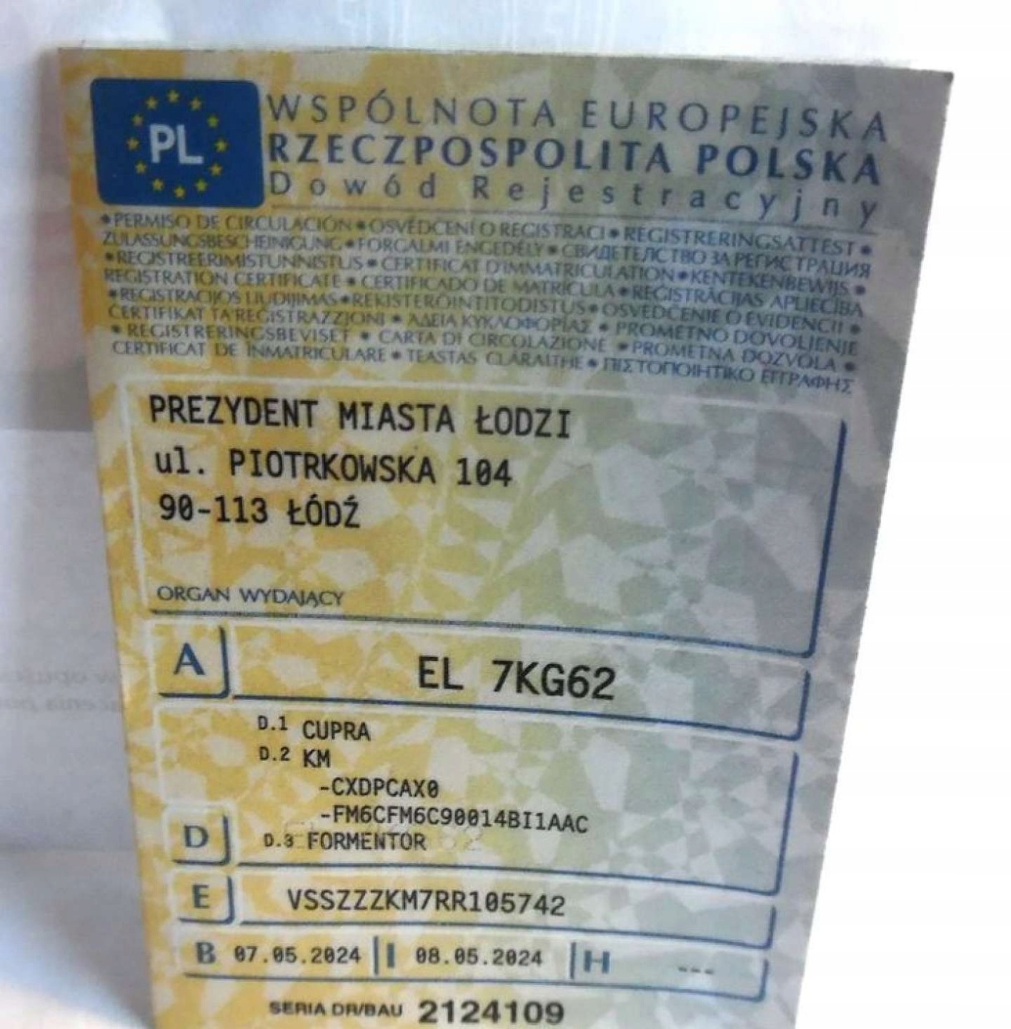 Cupra Formentor 052024r, Salonowy, 1.5TSI, Uszkodzony prawy przod. Poobija
