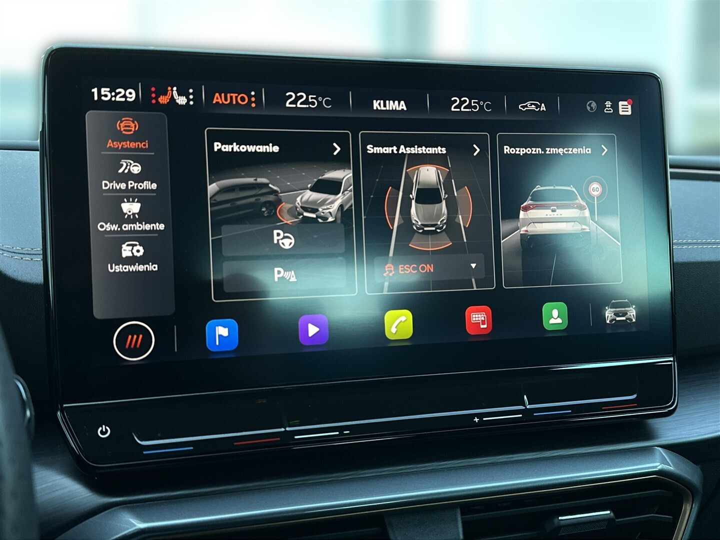 Czujnik deszczu, Czujnik martwego pola, Czujnik zmierzchu, Kamera cofania, Czujniki parkowania przednie, Czujniki parkowania tylne, Asystent parkowania, ABS, ESP (stabilizacja toru jazdy), Isofix, Poduszka powietrzna chroniąca kolana, Poduszka powietrzna kierowcy, Poduszka powietrzna pasażera, Elektryczne szyby przednie, Elektryczne szyby tylne, Podgrzewane przednie siedzenia, Przyciemniane szyby, Tapicerka skórzana, Elektrycznie ustawiane lusterka, Podgrzewane lusterka boczne, Wspomaganie kierownicy, Bluetooth, Gniazdo USB, Radio niefabryczne, Nawigacja GPS, Łopatki zmiany biegów, System Start-Stop, Tempomat aktywny, Alufelgi