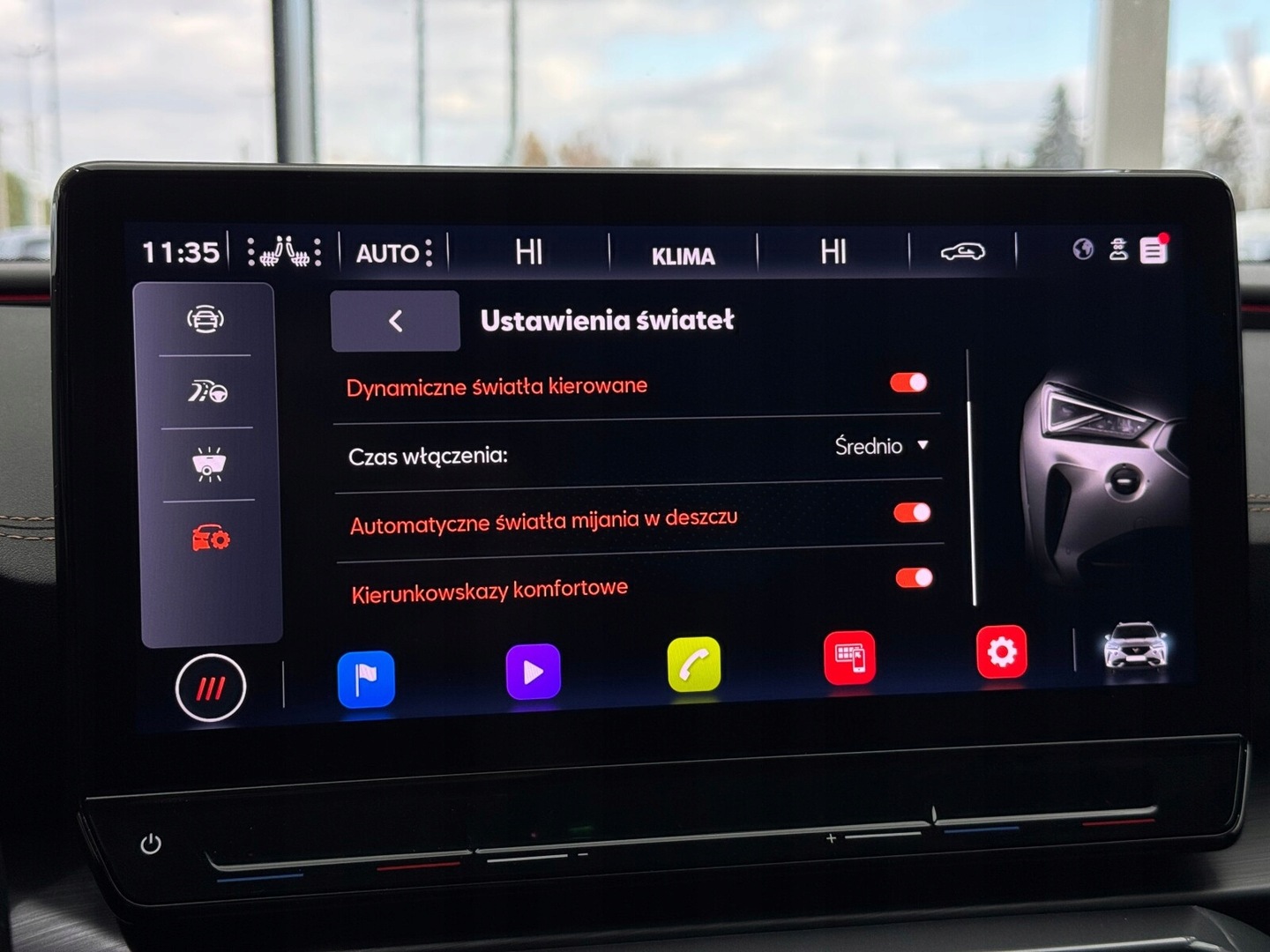 Czujnik deszczu, Czujnik martwego pola, Czujnik zmierzchu, Kamera cofania, Czujniki parkowania przednie, Czujniki parkowania tylne, Asystent parkowania, ABS, Poduszki boczne przednie, ESP (stabilizacja toru jazdy), Isofix, Poduszka powietrzna chroniąca kolana, Poduszka powietrzna kierowcy, Poduszka powietrzna pasażera, Elektryczne szyby przednie, Elektryczne szyby tylne, Elektrycznie ustawiane fotele, Podgrzewane przednie siedzenia, Przyciemniane szyby, Tapicerka skórzana, Elektrycznie ustawiane lusterka, Podgrzewane lusterka boczne, Wspomaganie kierownicy, Bluetooth, Gniazdo USB, Radio niefabryczne, Nawigacja GPS, Łopatki zmiany biegów, Ogranicznik prędkości, System Start-Stop, Tempomat aktywny, Alufelgi
