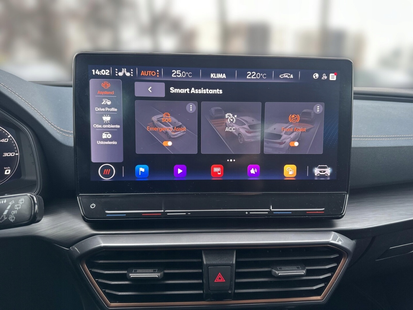 ABS, Asystent pasa ruchu, Poduszki boczne przednie, Poduszki boczne tylne, Isofix, Poduszka powietrzna chroniąca kolana, Poduszka powietrzna kierowcy, Czujnik martwego pola, Czujnik deszczu, Czujnik zmierzchu, Czujniki parkowania przednie, Czujniki parkowania tylne, ESP (stabilizacja toru jazdy), Asystent parkowania, Elektrycznie ustawiane lusterka, Przyciemniane szyby, Wspomaganie kierownicy, Zawieszenie adaptacyjne, Elektryczne szyby przednie, Elektryczne szyby tylne, Elektrycznie ustawiane fotele, Podgrzewane przednie siedzenia, Tapicerka skórzana, Podgrzewane lusterka boczne, Bluetooth, Gniazdo USB, Radio niefabryczne, Alufelgi, Ogranicznik prędkości, System Start-Stop, Tempomat aktywny, Łopatki zmiany biegów
