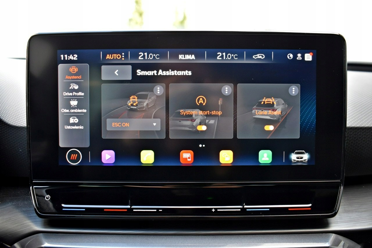 ABS, ASR (kontrola trakcji), Czujnik deszczu, Czujniki parkowania tylne, Immobilizer, Asystent parkowania, Asystent pasa ruchu, Czujnik martwego pola, Czujniki parkowania przednie, Kurtyny powietrzne, Poduszki boczne przednie, Poduszka powietrzna kierowcy, Poduszka powietrzna pasażera, ESP (stabilizacja toru jazdy), Isofix, Kamera cofania, Poduszki boczne tylne, Elektryczne szyby przednie, Elektryczne szyby tylne, Elektrycznie ustawiane lusterka, Podgrzewane przednie siedzenia, Wielofunkcyjna kierownica, Wspomaganie kierownicy, Podgrzewane lusterka boczne, Tapicerka ciemna, Tapicerka skórzana, Bluetooth, Gniazdo USB, Radio fabryczne, Bezkluczykowy dostęp, Centralny zamek, Komputer pokładowy, Relingi dachowe, Tempomat, Elektrochromatyczne lusterko wsteczne, Ogranicznik prędkości, System Start-Stop, Łopatki zmiany biegów, Tempomat aktywny