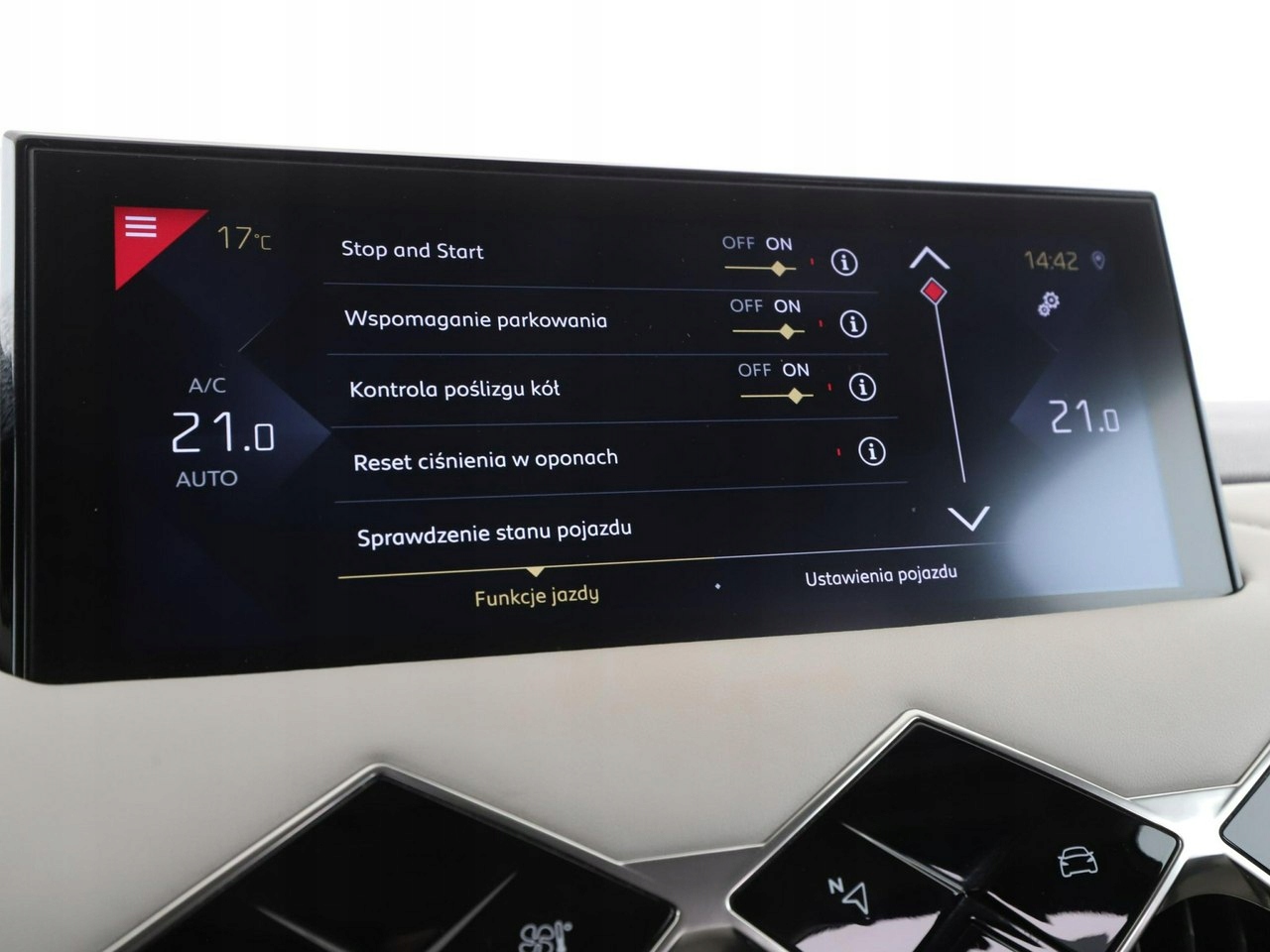 ABS, ASR (kontrola trakcji), Czujnik deszczu, Czujniki parkowania tylne, Immobilizer, Asystent pasa ruchu, Czujniki parkowania przednie, Poduszka powietrzna kierowcy, Poduszka powietrzna pasażera, Poduszki boczne przednie, ESP (stabilizacja toru jazdy), Isofix, Kamera cofania, Elektryczne szyby przednie, Elektryczne szyby tylne, Elektrycznie ustawiane lusterka, Przyciemniane szyby, Wielofunkcyjna kierownica, Wspomaganie kierownicy, Tapicerka skórzana, Radio fabryczne, Centralny zamek, Komputer pokładowy, Tempomat, System Start-Stop, Łopatki zmiany biegów