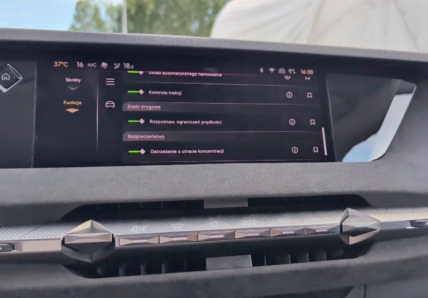 ABS, ASR (kontrola trakcji), Czujniki parkowania tylne, Czujnik martwego pola, ESP (stabilizacja toru jazdy), Isofix, Kamera cofania, Poduszka powietrzna pasażera, Poduszki boczne przednie, Elektryczne szyby przednie, Elektryczne szyby tylne, Elektrycznie ustawiane fotele, Elektrycznie ustawiane lusterka, Podgrzewana przednia szyba, Podgrzewane lusterka boczne, Podgrzewane przednie siedzenia, Podgrzewane tylne siedzenia, Przyciemniane szyby, Wspomaganie kierownicy, Bluetooth, Gniazdo USB, Nawigacja GPS, Radio fabryczne, Elektrochromatyczne lusterka boczne, Ogranicznik prędkości, System Start-Stop, Tempomat aktywny