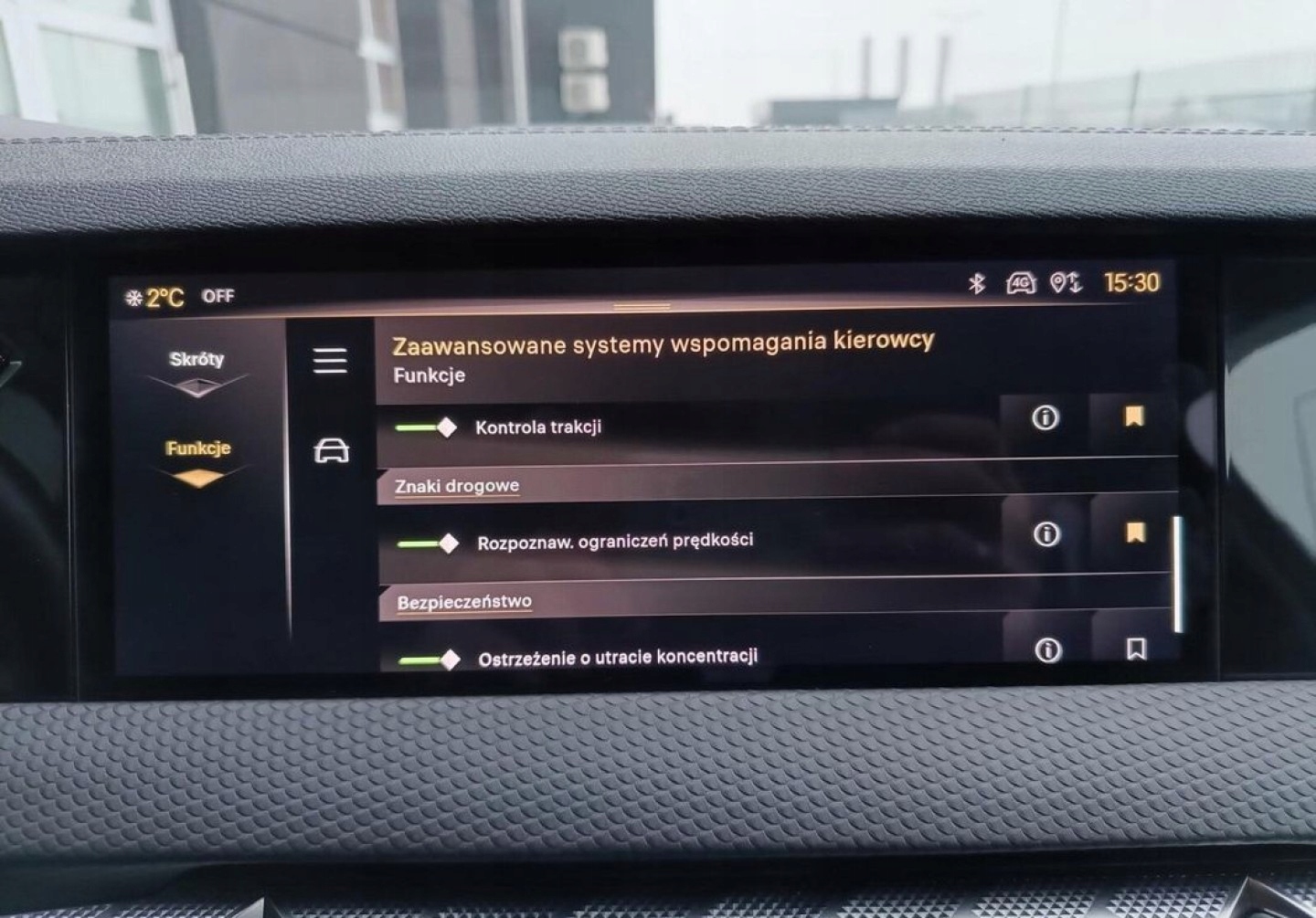 ABS, ASR (kontrola trakcji), Czujniki parkowania przednie, Czujniki parkowania tylne, Czujnik zmierzchu, HUD (wyświetlacz przezierny), Isofix, Kamera cofania, Kurtyny powietrzne, Poduszka powietrzna kierowcy, Poduszka powietrzna pasażera, Poduszki boczne przednie, Elektryczne szyby przednie, Elektryczne szyby tylne, Elektrycznie ustawiane fotele, Elektrycznie ustawiane lusterka, Podgrzewana przednia szyba, Przyciemniane szyby, Tapicerka skórzana, Wielofunkcyjna kierownica, Wspomaganie kierownicy, Skórzana kierownica, Bluetooth, Gniazdo USB, Nawigacja GPS, Radio fabryczne, Bezkluczykowy dostęp, Elektrochromatyczne lusterka boczne, Łopatki zmiany biegów, Ogranicznik prędkości, System Start-Stop, Tempomat