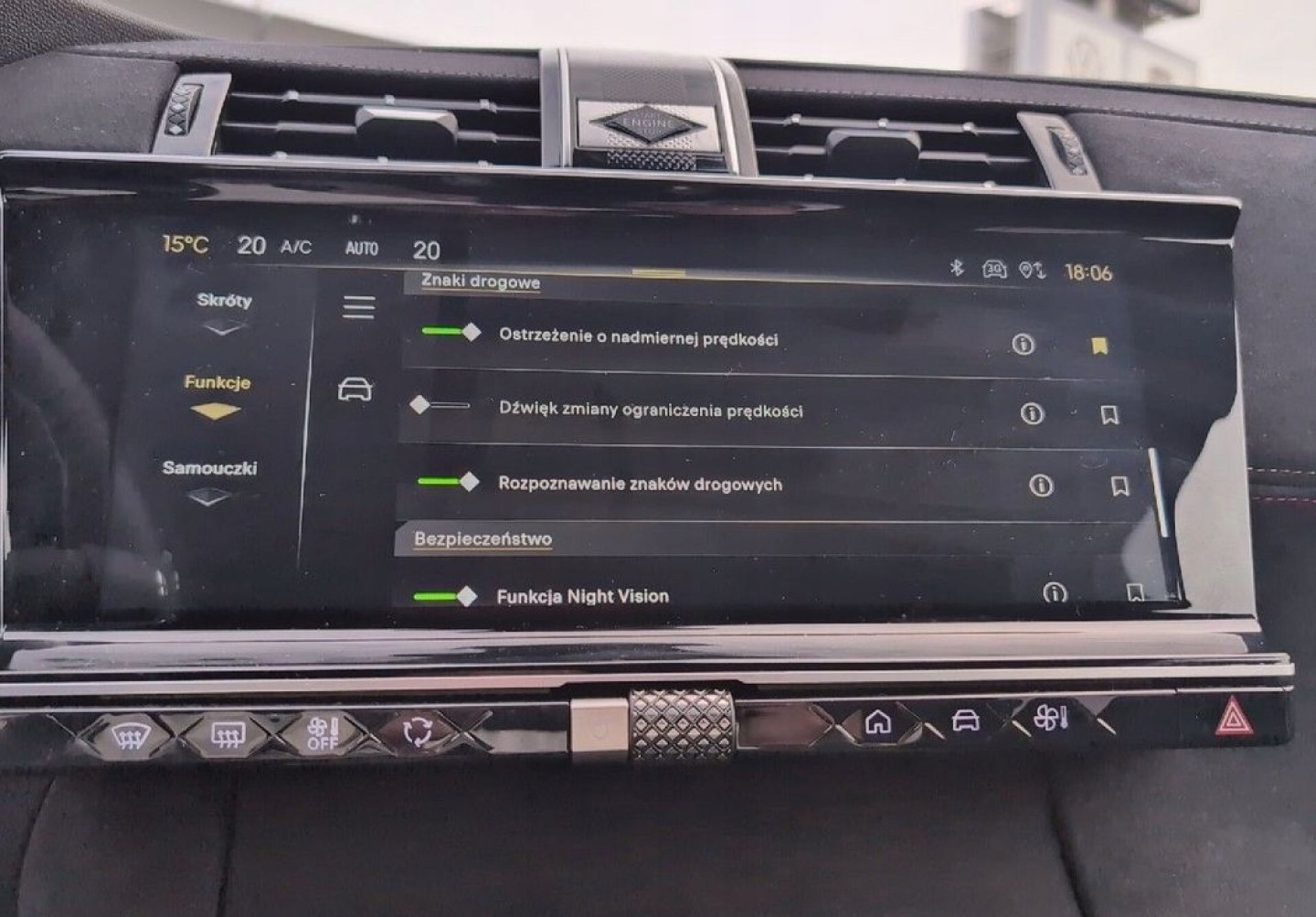 ABS, ASR (kontrola trakcji), Czujniki parkowania tylne, Czujnik martwego pola, ESP (stabilizacja toru jazdy), Isofix, Kamera cofania, Poduszka powietrzna pasażera, Poduszki boczne przednie, Światła xenonowe, Elektryczne szyby przednie, Elektryczne szyby tylne, Elektrycznie ustawiane fotele, Elektrycznie ustawiane lusterka, Podgrzewane lusterka boczne, Przyciemniane szyby, Tapicerka skórzana, Wspomaganie kierownicy, Bluetooth, Gniazdo USB, Nawigacja GPS, Radio fabryczne, Elektrochromatyczne lusterka boczne, Ogranicznik prędkości, Tempomat aktywny
