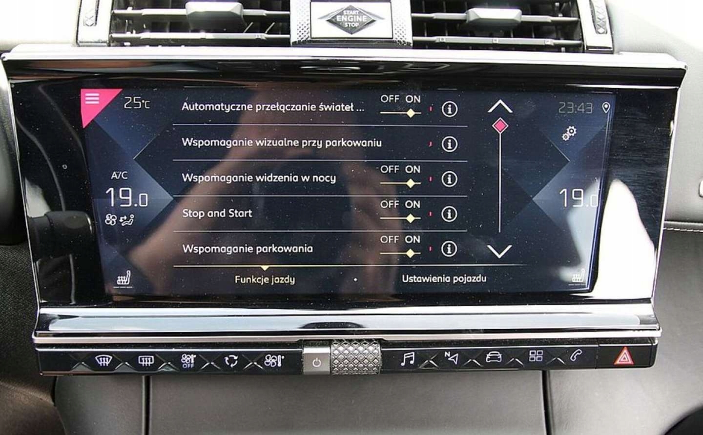 ABS, ASR (kontrola trakcji), Czujniki parkowania tylne, Czujnik martwego pola, ESP (stabilizacja toru jazdy), Isofix, Kamera cofania, Poduszka powietrzna pasażera, Poduszki boczne przednie, Elektryczne szyby przednie, Elektryczne szyby tylne, Elektrycznie ustawiane lusterka, Podgrzewane lusterka boczne, Podgrzewane przednie siedzenia, Podgrzewane tylne siedzenia, Przyciemniane szyby, Tapicerka skórzana, Wspomaganie kierownicy, Bluetooth, Gniazdo USB, Nawigacja GPS, Radio fabryczne, Elektrochromatyczne lusterka boczne, Ogranicznik prędkości, System Start-Stop, Tempomat aktywny