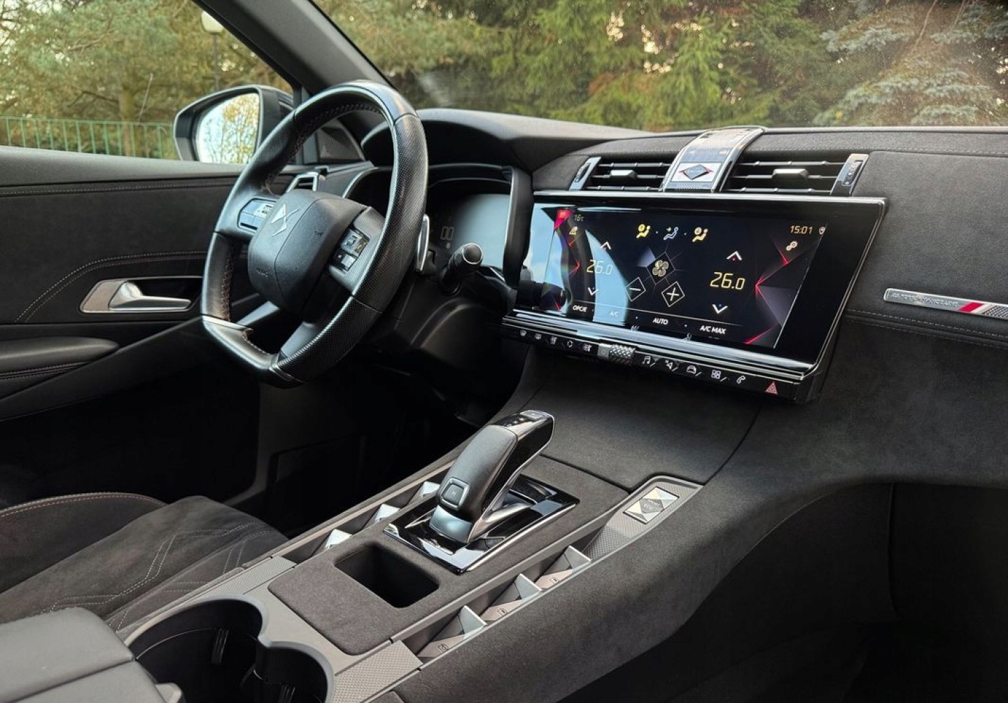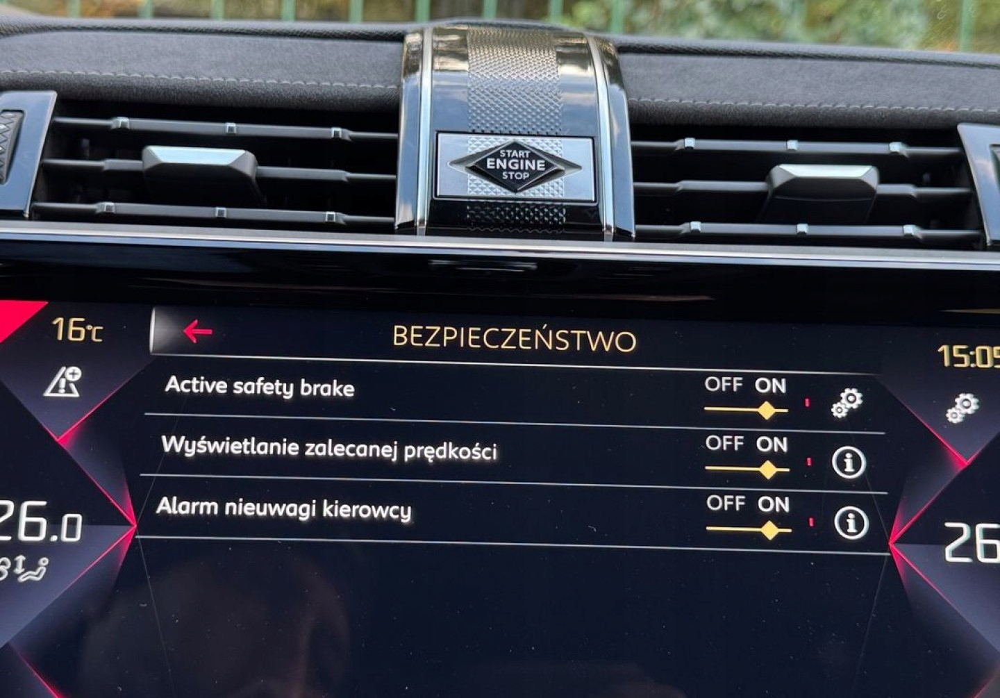 ABS, ASR (kontrola trakcji), Asystent pasa ruchu, Czujnik deszczu, Czujniki parkowania przednie, Czujniki parkowania tylne, Czujnik zmierzchu, ESP (stabilizacja toru jazdy), Isofix, Kamera cofania, Kurtyny powietrzne, Poduszka powietrzna chroniąca kolana, Poduszka powietrzna kierowcy, Poduszka powietrzna pasażera, Poduszki boczne przednie, Poduszki boczne tylne, Elektryczne szyby przednie, Elektryczne szyby tylne, Elektrycznie ustawiane lusterka, Podgrzewana przednia szyba, Podgrzewane lusterka boczne, Przyciemniane szyby, Tapicerka alcantara, Wielofunkcyjna kierownica, Wspomaganie kierownicy, Zawieszenie adaptacyjne, Skórzana kierownica, Bluetooth, Gniazdo USB, Nawigacja GPS, Radio fabryczne, Alufelgi, Bezkluczykowy dostęp, Elektrochromatyczne lusterka boczne, Łopatki zmiany biegów, Ogranicznik prędkości, System Start-Stop, Tempomat aktywny