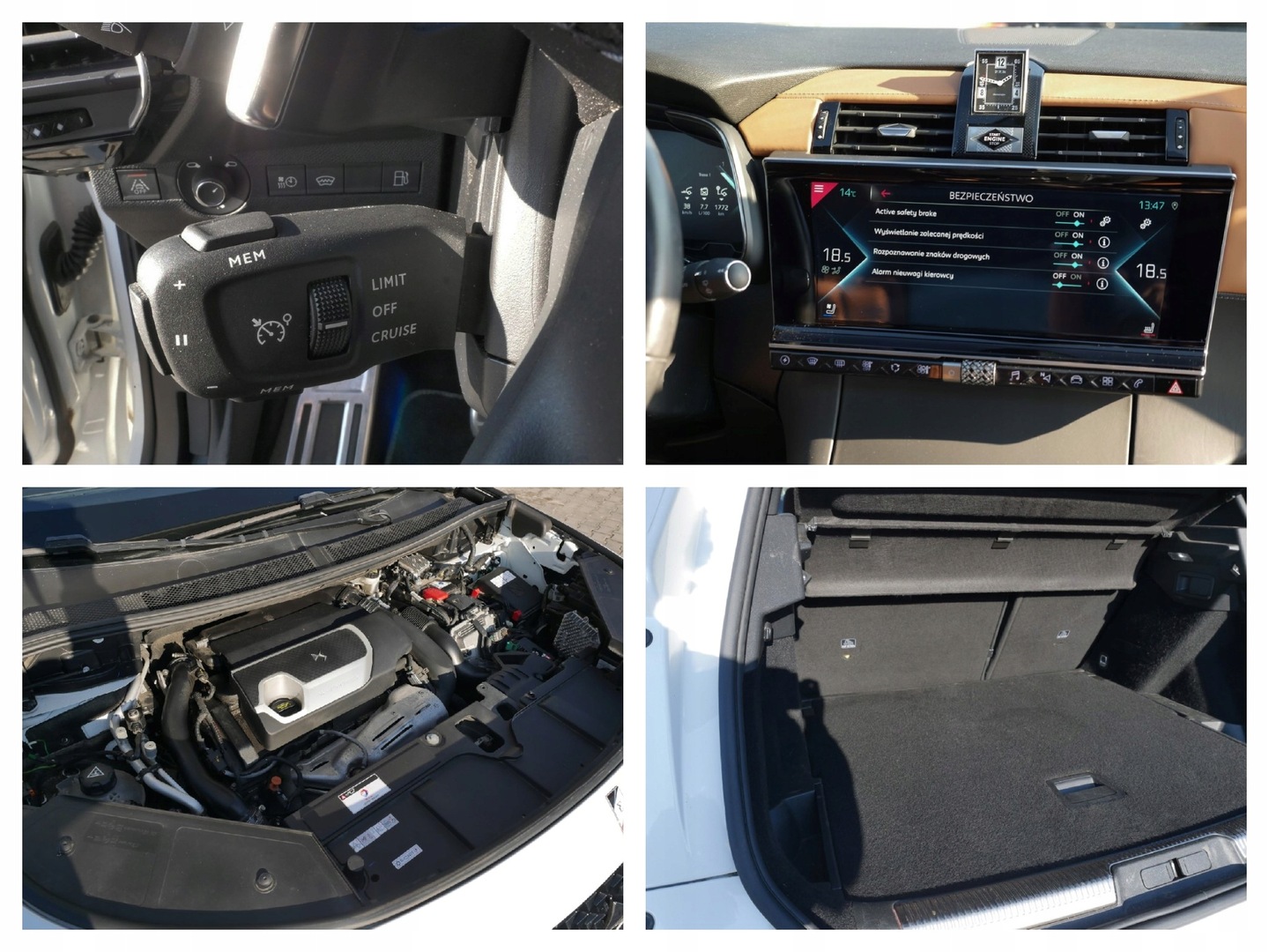 ASR (kontrola trakcji), Asystent pasa ruchu, Czujnik deszczu, Czujniki parkowania przednie, Czujniki parkowania tylne, Czujnik martwego pola, Czujnik zmierzchu, ESP (stabilizacja toru jazdy), Isofix, Kamera cofania, Kurtyny powietrzne, Poduszka powietrzna chroniąca kolana, Elektrycznie ustawiane fotele, Elektrycznie ustawiane lusterka, Ogrzewanie postojowe, Podgrzewana przednia szyba, Podgrzewane lusterka boczne, Podgrzewane przednie siedzenia, Przyciemniane szyby, Skórzana kierownica, Tapicerka skórzana, Wentylowane fotele, Wielofunkcyjna kierownica, Bluetooth, Gniazdo USB, MP3, Nawigacja GPS, Radio fabryczne, Alufelgi, Bezkluczykowy dostęp, Dach panoramiczny, Elektrochromatyczne lusterka boczne, Elektrochromatyczne lusterko wsteczne, Komputer pokładowy, Liczniki LCD, Łopatki zmiany biegów, Ogranicznik prędkości, Relingi dachowe, Tempomat aktywny