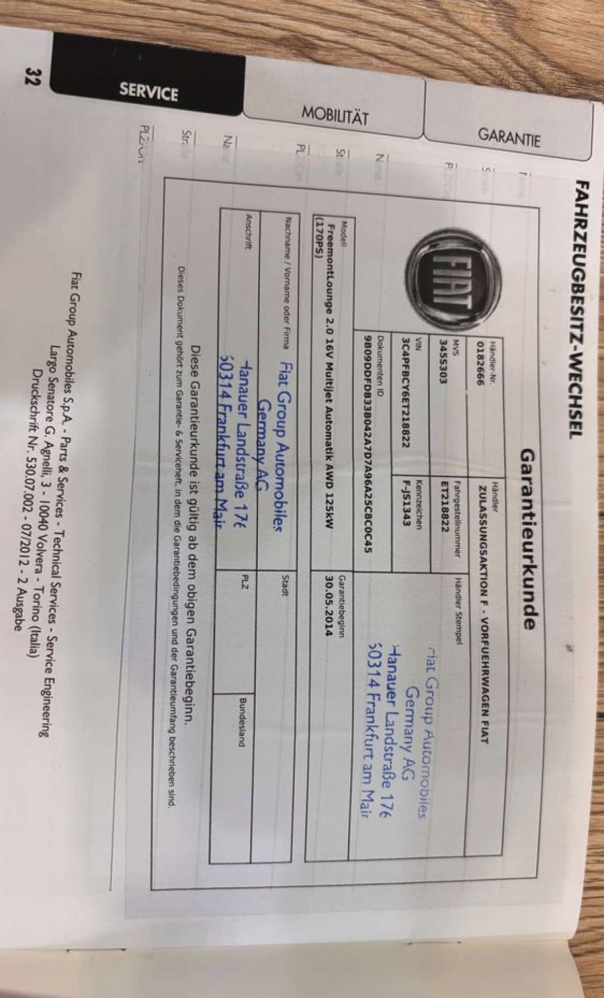 Fiat Freemont 2.0 Multijet II 16v 170KM 2014 Fiat Freemont Fiat Freemont 2.0 Multijet 16V DPF Automatik Allrad Lounge