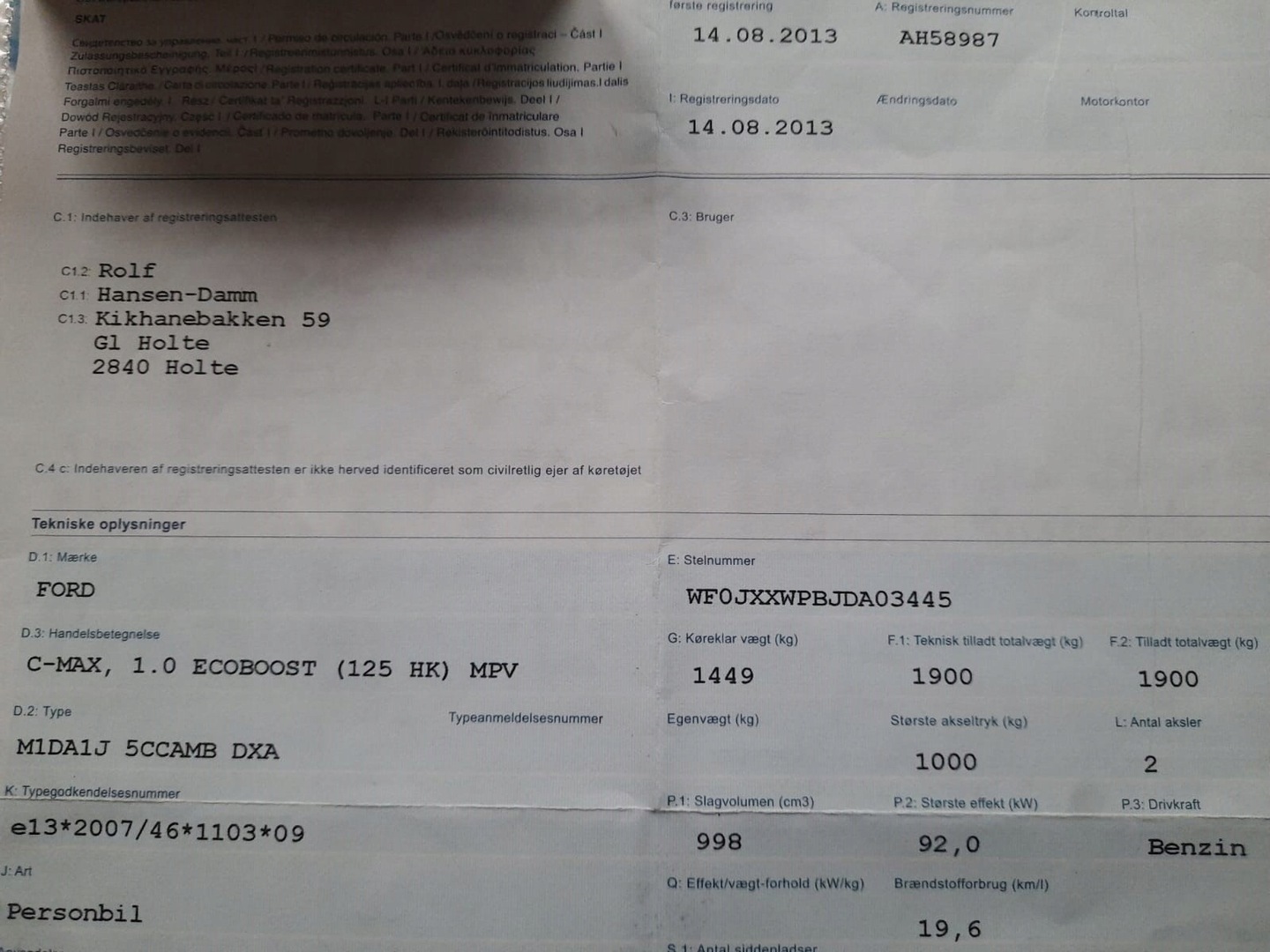 Ford C-MAX II Minivan 1.0 EcoBoost 125KM 2013