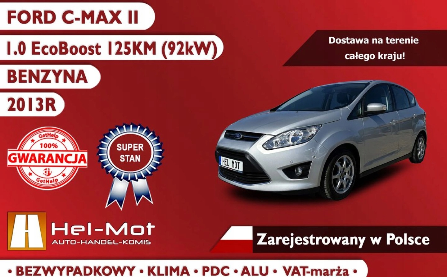 Ford C-MAX II 2013R, Klima, PDC, Zarejestrowany w Polsce, VAT-marza 125KM