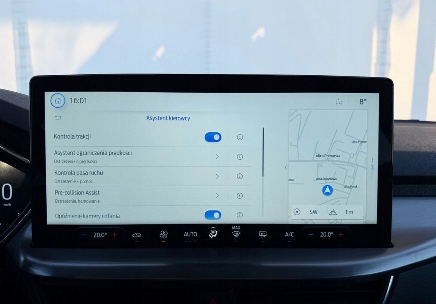 ASR (kontrola trakcji), Asystent pasa ruchu, Czujnik deszczu, Czujniki parkowania przednie, Czujniki parkowania tylne, Czujnik zmierzchu, ESP (stabilizacja toru jazdy), Isofix, Kamera cofania, Kurtyny powietrzne, Poduszka powietrzna kierowcy, Poduszki boczne przednie, Poduszki boczne tylne, Elektryczne szyby przednie, Elektryczne szyby tylne, Elektrycznie ustawiane lusterka, Podgrzewane lusterka boczne, Przyciemniane szyby, Tapicerka tekstylna, Wielofunkcyjna kierownica, Wspomaganie kierownicy, Skórzana kierownica, Bluetooth, Gniazdo USB, Nawigacja GPS, Radio fabryczne, Alufelgi, Elektrochromatyczne lusterka boczne, System Start-Stop, Tempomat