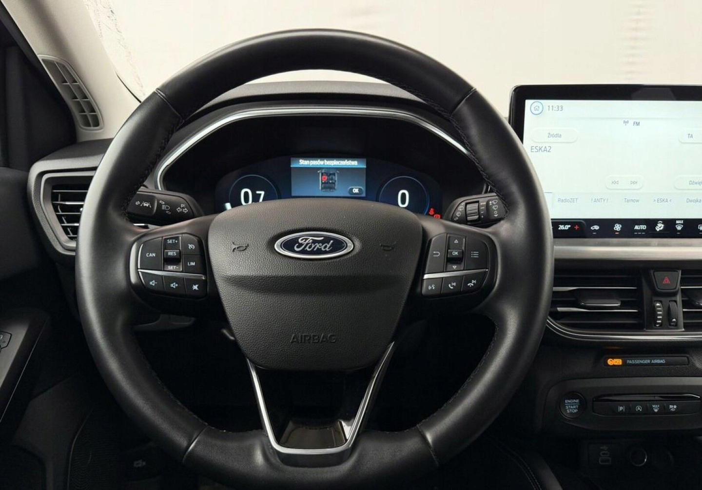 ASR (kontrola trakcji), Asystent pasa ruchu, Czujnik deszczu, Czujniki parkowania przednie, Czujniki parkowania tylne, Czujnik zmierzchu, ESP (stabilizacja toru jazdy), Isofix, Kamera cofania, Kurtyny powietrzne, Poduszka powietrzna kierowcy, Poduszki boczne przednie, Poduszki boczne tylne, Elektryczne szyby przednie, Elektryczne szyby tylne, Elektrycznie ustawiane lusterka, Podgrzewane lusterka boczne, Przyciemniane szyby, Tapicerka tekstylna, Wielofunkcyjna kierownica, Wspomaganie kierownicy, Skórzana kierownica, Bluetooth, Gniazdo USB, Nawigacja GPS, Radio fabryczne, Alufelgi, Elektrochromatyczne lusterka boczne, System Start-Stop, Tempomat