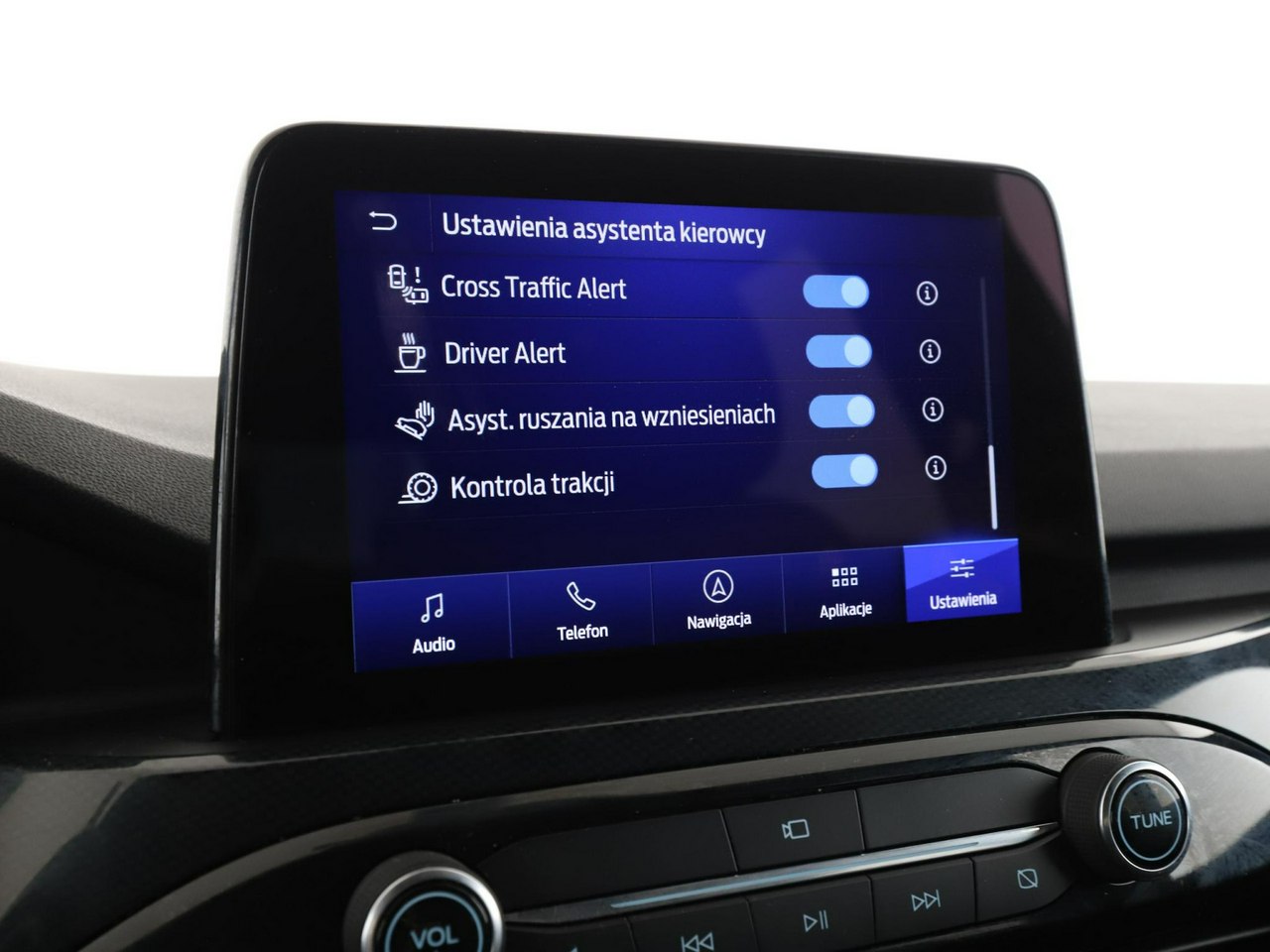 ABS, ASR (kontrola trakcji), Czujnik deszczu, Czujniki parkowania tylne, Asystent parkowania, Asystent pasa ruchu, Czujnik martwego pola, Czujniki parkowania przednie, Poduszka powietrzna kierowcy, Poduszka powietrzna pasażera, Poduszki boczne przednie, ESP (stabilizacja toru jazdy), Isofix, Kamera cofania, Elektryczne szyby przednie, Elektryczne szyby tylne, Elektrycznie ustawiane lusterka, Podgrzewane przednie siedzenia, Przyciemniane szyby, Wspomaganie kierownicy, Tapicerka tekstylna, Bluetooth, Gniazdo USB, Radio fabryczne, Nawigacja GPS, Centralny zamek, Komputer pokładowy, Relingi dachowe, Tempomat, System Start-Stop, Tempomat aktywny