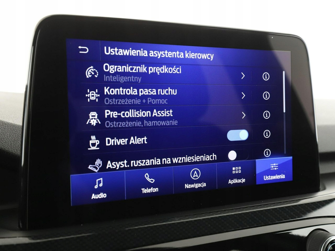ABS, ASR (kontrola trakcji), Czujniki parkowania tylne, Asystent pasa ruchu, Czujniki parkowania przednie, Poduszka powietrzna kierowcy, Poduszka powietrzna pasażera, Poduszki boczne przednie, ESP (stabilizacja toru jazdy), Isofix, Elektryczne szyby przednie, Elektryczne szyby tylne, Elektrycznie ustawiane lusterka, Przyciemniane szyby, Wspomaganie kierownicy, Tapicerka skórzana, Bluetooth, Gniazdo USB, Centralny zamek, Komputer pokładowy, Relingi dachowe, Tempomat, Ogranicznik prędkości, System Start-Stop
