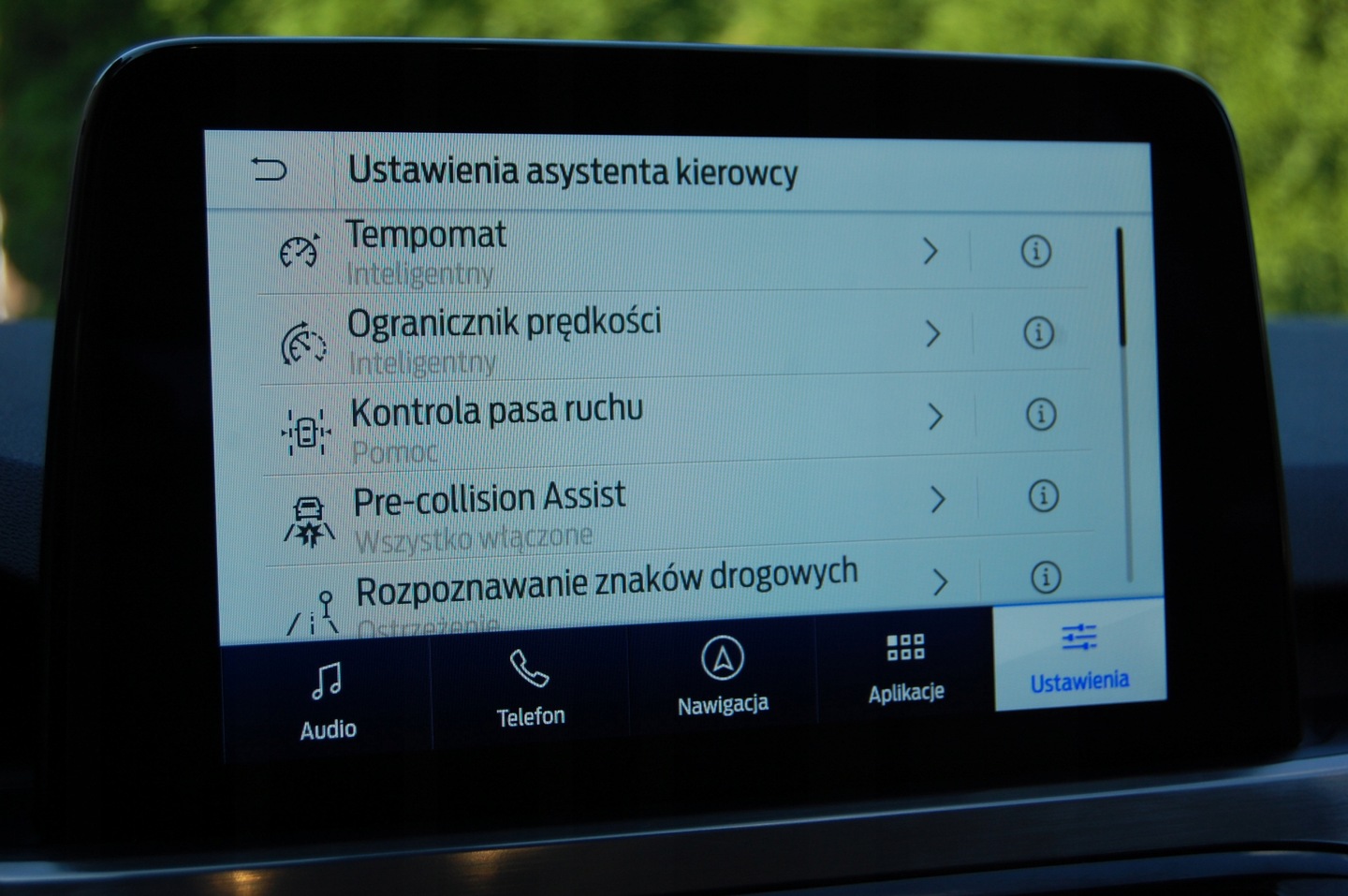 ABS, ASR (kontrola trakcji), Asystent parkowania, Asystent pasa ruchu, Czujnik deszczu, Czujniki parkowania przednie, Czujniki parkowania tylne, Czujnik martwego pola, Czujnik zmierzchu, ESP (stabilizacja toru jazdy), Immobilizer, Isofix, Kamera cofania, Kurtyny powietrzne, Poduszka powietrzna chroniąca kolana, Poduszka powietrzna kierowcy, Poduszka powietrzna pasażera, Poduszki boczne przednie, Poduszki boczne tylne, Elektryczne szyby przednie, Elektryczne szyby tylne, Elektrycznie ustawiane lusterka, Podgrzewana kierownica, Podgrzewana przednia szyba, Podgrzewana tylna szyba, Podgrzewane lusterka boczne, Podgrzewane przednie siedzenia, Podgrzewane tylne siedzenia, Przyciemniane szyby, Skórzana kierownica, Tapicerka ciemna, Wielofunkcyjna kierownica, Wspomaganie kierownicy, Bluetooth, CD, Gniazdo AUX, Gniazdo USB, MP3, Nawigacja GPS, Radio fabryczne, Alufelgi, Bezkluczykowy dostęp, Centralny zamek, Elektrochromatyczne lusterka boczne, Elektrochromatyczne lusterko wsteczne, Hak, Komputer pokładowy, Liczniki LCD, Łopatki zmiany biegów, Ogranicznik prędkości, Otwieranie pilotem, Relingi dachowe, System Start-Stop, Tempomat