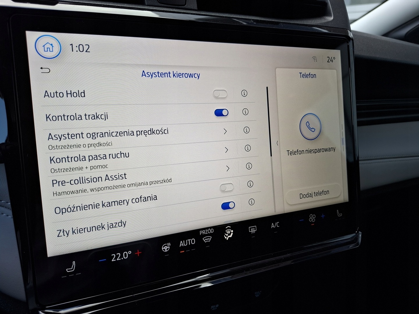 ABS, ASR (kontrola trakcji), Asystent parkowania, Asystent pasa ruchu, Czujnik deszczu, Czujniki parkowania tylne, Czujnik zmierzchu, ESP (stabilizacja toru jazdy), Immobilizer, Isofix, Kamera cofania, Kurtyny powietrzne, Poduszka powietrzna kierowcy, Poduszka powietrzna pasażera, Poduszki boczne przednie, Elektryczne szyby przednie, Elektryczne szyby tylne, Ogrzewanie postojowe, Podgrzewana kierownica, Podgrzewana przednia szyba, Podgrzewana tylna szyba, Podgrzewane lusterka boczne, Podgrzewane przednie siedzenia, Przyciemniane szyby, Skórzana kierownica, Tapicerka ciemna, Tapicerka tekstylna, Wielofunkcyjna kierownica, Wspomaganie kierownicy, Bluetooth, Gniazdo USB, MP3, Nawigacja GPS, Radio fabryczne, Alufelgi, Bezkluczykowy dostęp, Centralny zamek, Elektrochromatyczne lusterko wsteczne, Komputer pokładowy, Liczniki LCD, Ogranicznik prędkości, Otwieranie pilotem, System Start-Stop, Tempomat, Tempomat aktywny