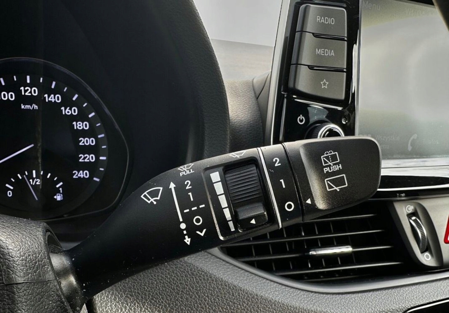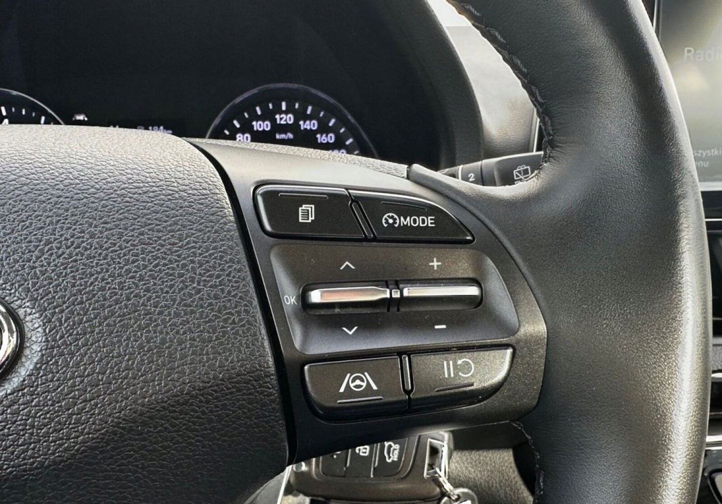 ABS, Asystent pasa ruchu, Czujniki parkowania tylne, ESP (stabilizacja toru jazdy), Isofix, Kurtyny powietrzne, Poduszki boczne przednie, Elektrycznie ustawiane lusterka, Podgrzewane lusterka boczne, Tapicerka tekstylna, Wielofunkcyjna kierownica, Wspomaganie kierownicy, Skórzana kierownica, Bluetooth, Gniazdo USB, Radio fabryczne, Alufelgi, Elektrochromatyczne lusterka boczne, Ogranicznik prędkości, System Start-Stop, Tempomat
