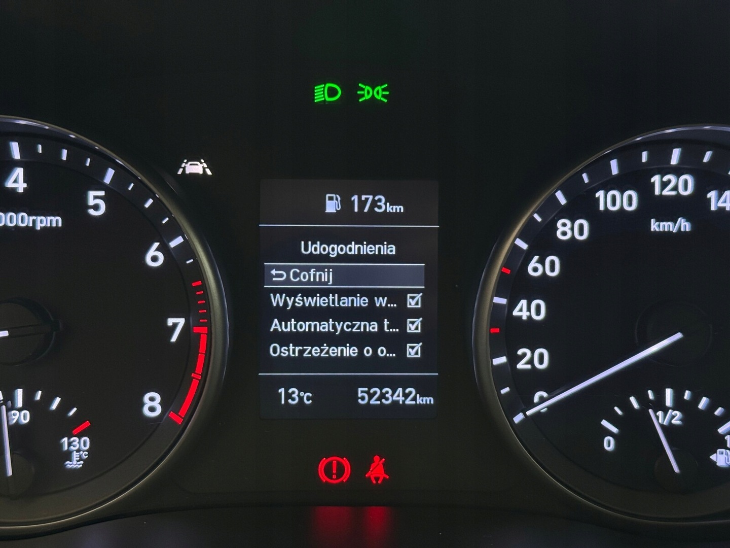 Czujnik zmierzchu, Czujniki parkowania tylne, ABS, Poduszki boczne przednie, ESP (stabilizacja toru jazdy), Isofix, Poduszka powietrzna kierowcy, Poduszka powietrzna pasażera, Elektryczne szyby przednie, Elektryczne szyby tylne, Przyciemniane szyby, Elektrycznie ustawiane lusterka, Wspomaganie kierownicy, Bluetooth, Gniazdo USB, Radio niefabryczne, Ogranicznik prędkości, System Start-Stop, Tempomat, Alufelgi
