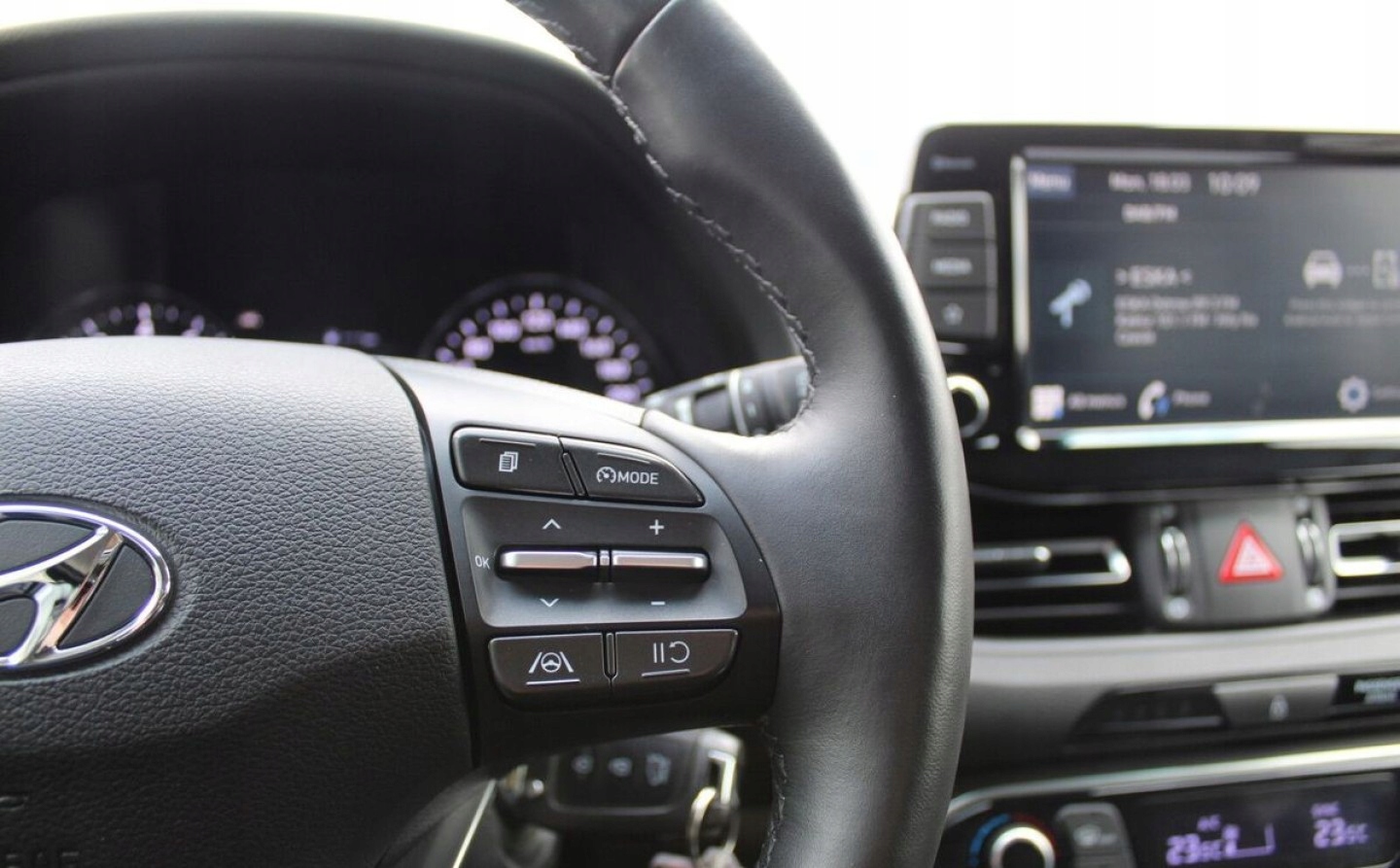 ABS, Asystent pasa ruchu, Czujniki parkowania tylne, Isofix, Kamera cofania, Poduszki boczne przednie, Elektrycznie ustawiane lusterka, Podgrzewane lusterka boczne, Przyciemniane szyby, Tapicerka tekstylna, Wspomaganie kierownicy, Bluetooth, Gniazdo USB, Alufelgi, Elektrochromatyczne lusterka boczne, Tempomat