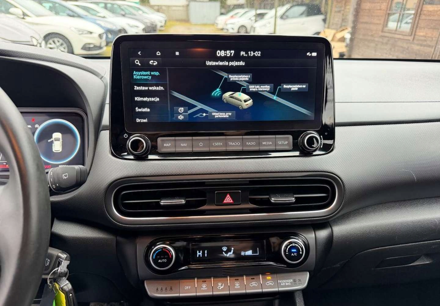 ABS, Alarm, Czujnik deszczu, Czujnik martwego pola, Czujnik zmierzchu, ESP (stabilizacja toru jazdy), HUD (wyświetlacz przezierny), Isofix, Kamera cofania, Poduszka powietrzna kierowcy, Poduszka powietrzna pasażera, Poduszki boczne przednie, Poduszki boczne tylne, Elektryczne szyby przednie, Elektryczne szyby tylne, Elektrycznie ustawiane lusterka, Podgrzewane lusterka boczne, Przyciemniane szyby, Tapicerka tekstylna, Wielofunkcyjna kierownica, Wspomaganie kierownicy, Skórzana kierownica, Bluetooth, Gniazdo USB, Nawigacja GPS, Radio fabryczne, Alufelgi, Ogranicznik prędkości, System Start-Stop, Tempomat
