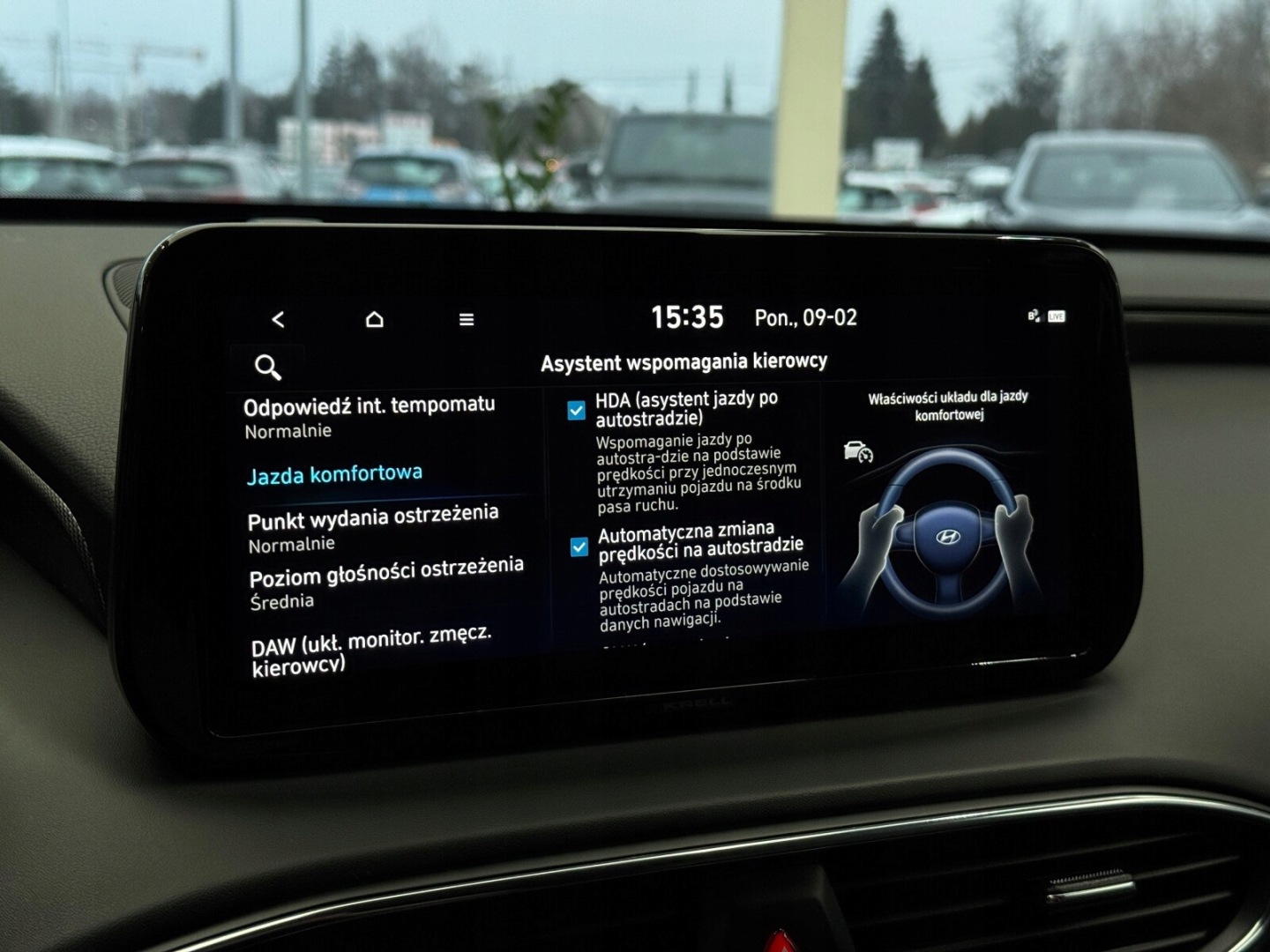 HUD (wyświetlacz przezierny), Czujnik martwego pola, Czujnik zmierzchu, Kamera cofania, Czujniki parkowania przednie, Czujniki parkowania tylne, ABS, Poduszki boczne przednie, ESP (stabilizacja toru jazdy), Isofix, Poduszka powietrzna kierowcy, Poduszka powietrzna pasażera, Elektryczne szyby przednie, Elektryczne szyby tylne, Elektrycznie ustawiane fotele, Podgrzewane tylne siedzenia, Podgrzewane przednie siedzenia, Przyciemniane szyby, Tapicerka skórzana, Elektrycznie ustawiane lusterka, Wspomaganie kierownicy, Bluetooth, Gniazdo USB, Radio niefabryczne, Nawigacja GPS, Łopatki zmiany biegów, Ogranicznik prędkości, System Start-Stop, Tempomat aktywny, Alufelgi