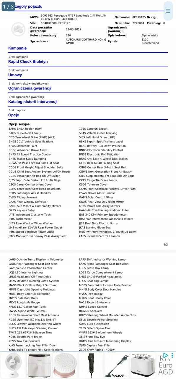 Jeep Renegade 1.4 Turbo Benzyna Automat 1 reka