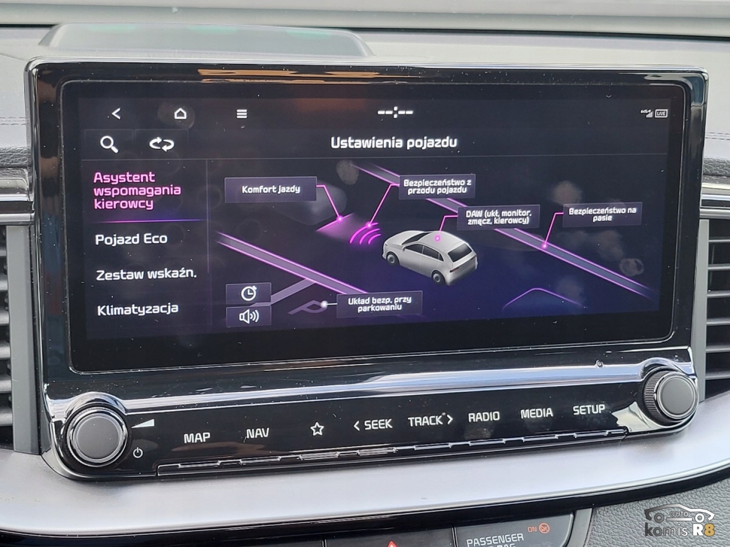 ABS, ASR (kontrola trakcji), Asystent parkowania, Asystent pasa ruchu, Czujnik deszczu, Czujniki parkowania przednie, Czujniki parkowania tylne, Czujnik martwego pola, Czujnik zmierzchu, ESP (stabilizacja toru jazdy), Isofix, Kamera cofania, Kurtyny powietrzne, Poduszka powietrzna chroniąca kolana, Poduszka powietrzna kierowcy, Poduszka powietrzna pasażera, Poduszki boczne przednie, Elektryczne szyby przednie, Elektryczne szyby tylne, Elektrycznie ustawiane lusterka, Ogrzewanie postojowe, Podgrzewana kierownica, Podgrzewane lusterka boczne, Podgrzewane przednie siedzenia, Podgrzewane tylne siedzenia, Tapicerka tekstylna, Wielofunkcyjna kierownica, Wspomaganie kierownicy, Skórzana kierownica, Bluetooth, Gniazdo USB, Nawigacja GPS, Radio fabryczne, Bezkluczykowy dostęp, Elektrochromatyczne lusterka boczne, Ogranicznik prędkości, System Start-Stop