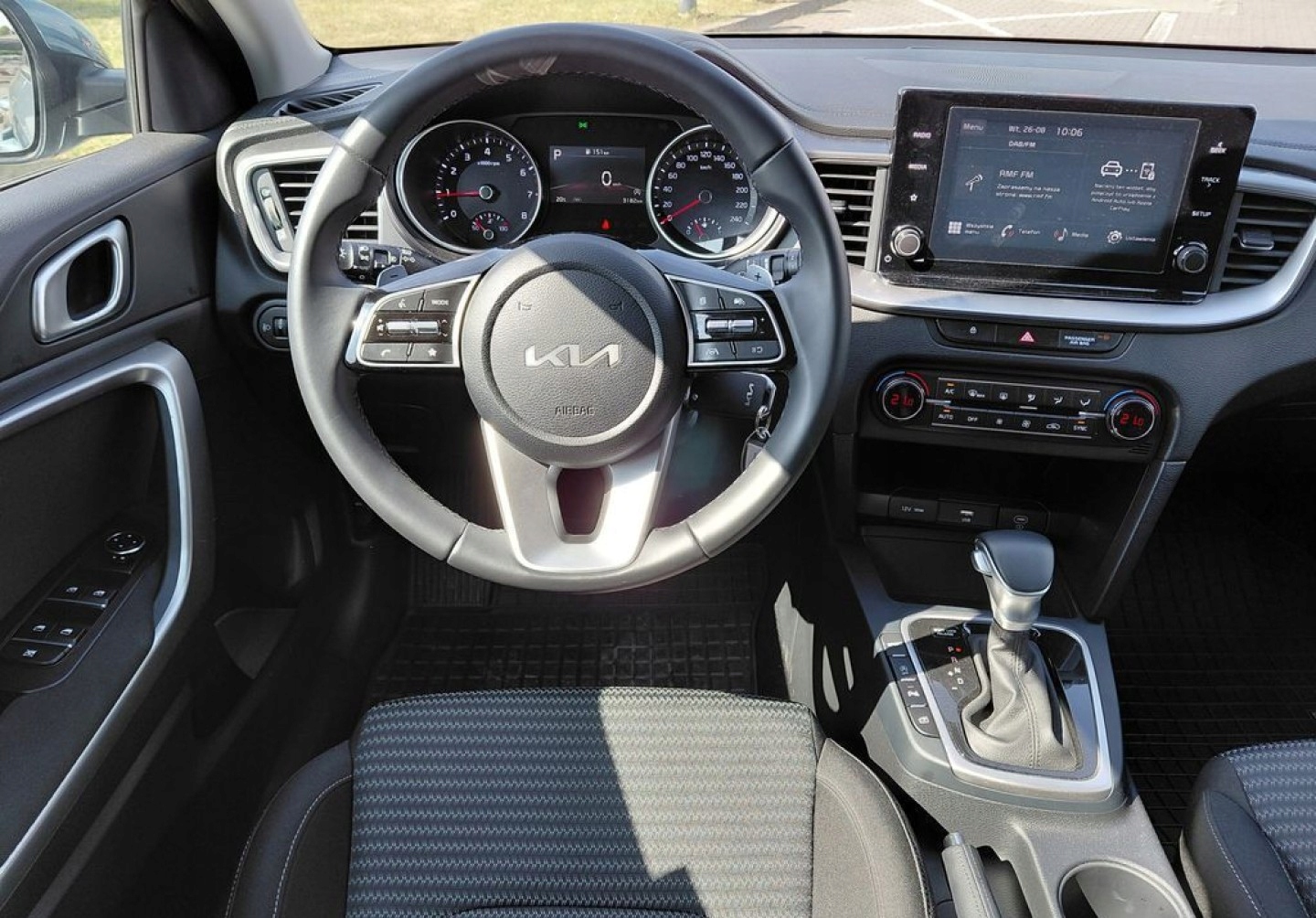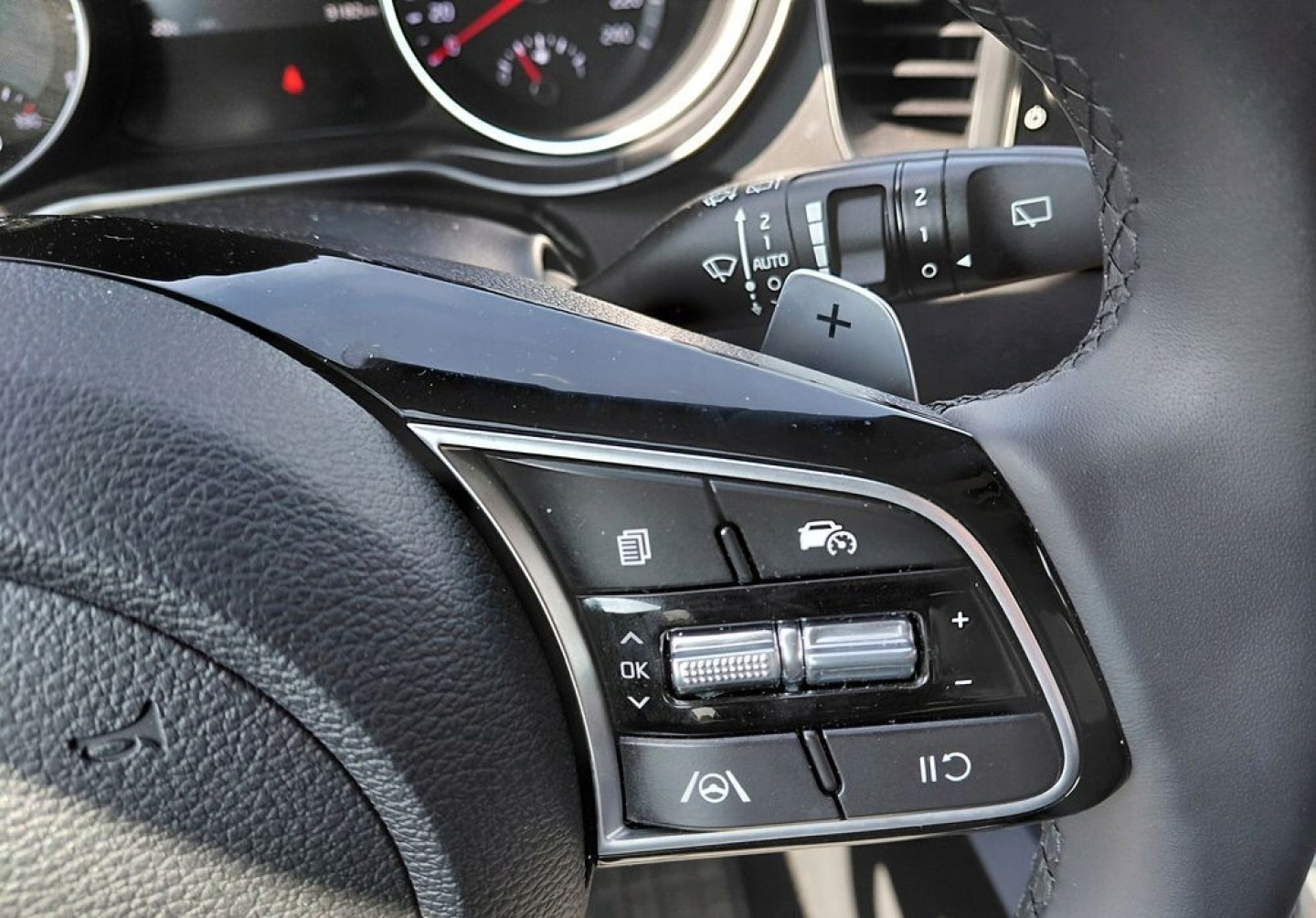 ABS, Asystent pasa ruchu, Czujnik deszczu, Czujniki parkowania przednie, Czujniki parkowania tylne, ESP (stabilizacja toru jazdy), Kamera cofania, Elektrycznie ustawiane lusterka, Podgrzewane lusterka boczne, Tapicerka tekstylna, Wielofunkcyjna kierownica, Skórzana kierownica, Bluetooth, Gniazdo USB, Radio fabryczne, Alufelgi, Elektrochromatyczne lusterka boczne, System Start-Stop, Tempomat