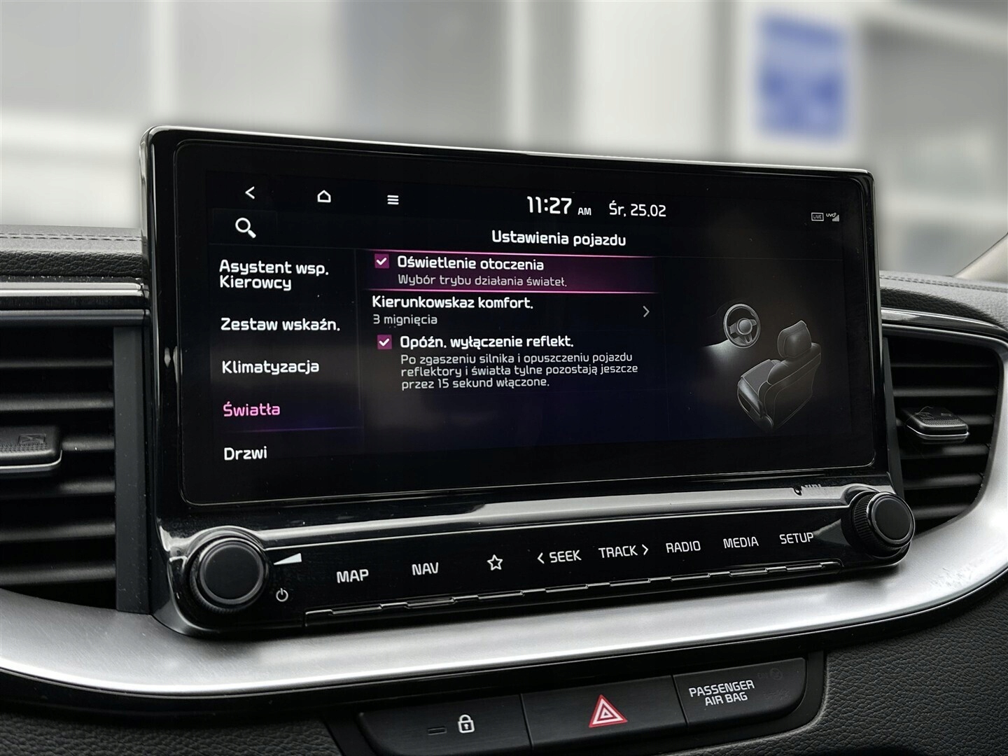ABS, Asystent pasa ruchu, Poduszki boczne przednie, Poduszki boczne tylne, Czujnik deszczu, Czujnik zmierzchu, ESP (stabilizacja toru jazdy), Isofix, Kamera cofania, Czujniki parkowania tylne, Poduszka powietrzna kierowcy, Czujniki parkowania przednie, Asystent parkowania, Poduszka powietrzna chroniąca kolana, Poduszka powietrzna pasażera, Elektrycznie ustawiane lusterka, Przyciemniane szyby, Tapicerka skórzana, Wspomaganie kierownicy, Elektryczne szyby przednie, Elektryczne szyby tylne, Podgrzewana przednia szyba, Podgrzewane przednie siedzenia, Podgrzewane lusterka boczne, Bluetooth, Gniazdo USB, Radio niefabryczne, Nawigacja GPS, Alufelgi, Ogranicznik prędkości, System Start-Stop, Tempomat aktywny