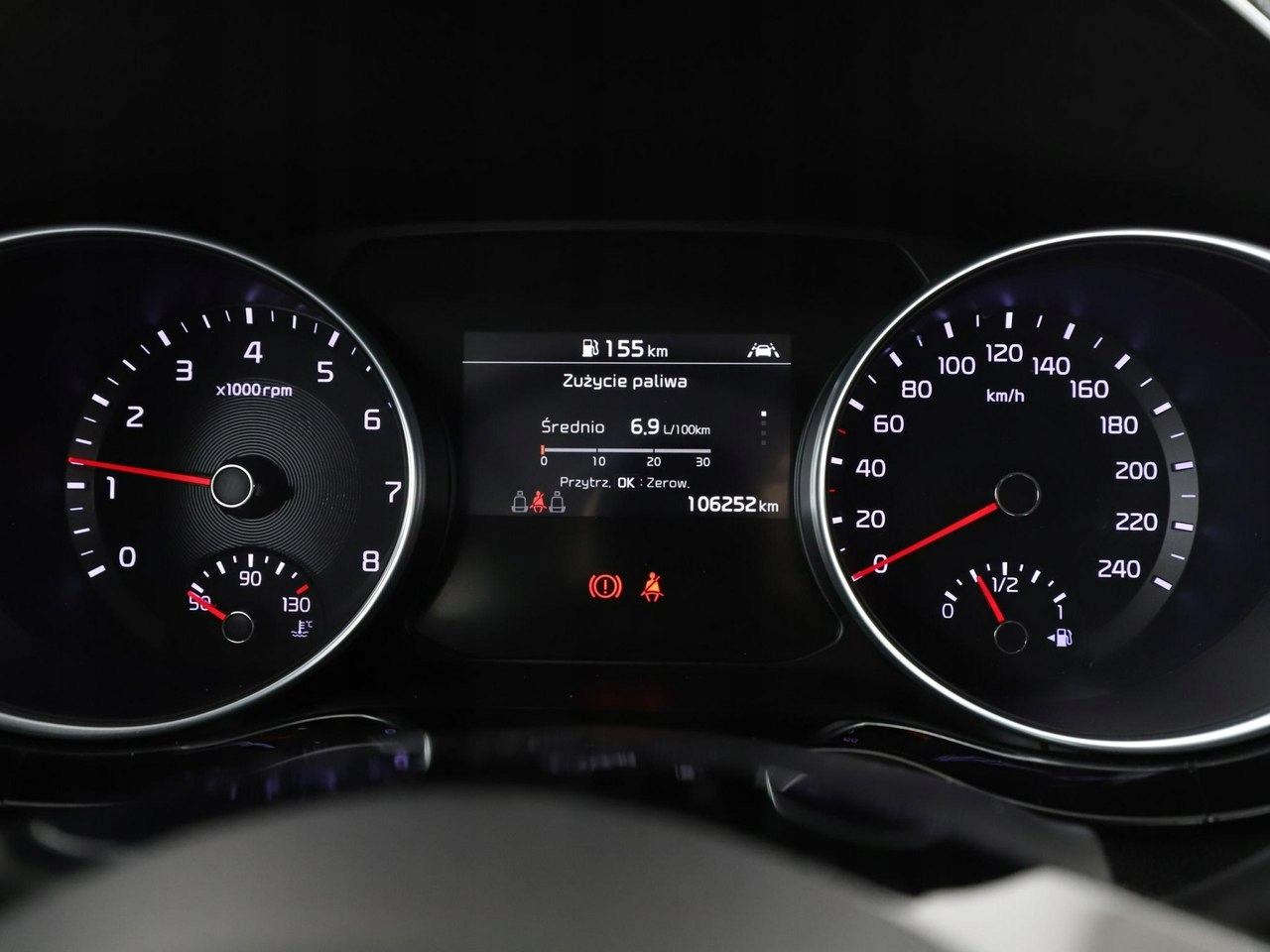 ABS, ASR (kontrola trakcji), Czujniki parkowania tylne, Immobilizer, Asystent pasa ruchu, Poduszka powietrzna kierowcy, Poduszka powietrzna pasażera, Poduszki boczne przednie, ESP (stabilizacja toru jazdy), Isofix, Kamera cofania, Elektryczne szyby przednie, Elektryczne szyby tylne, Elektrycznie ustawiane lusterka, Podgrzewane przednie siedzenia, Wielofunkcyjna kierownica, Wspomaganie kierownicy, Tapicerka tekstylna, Gniazdo USB, Radio fabryczne, Centralny zamek, Komputer pokładowy, Relingi dachowe, Tempomat, System Start-Stop