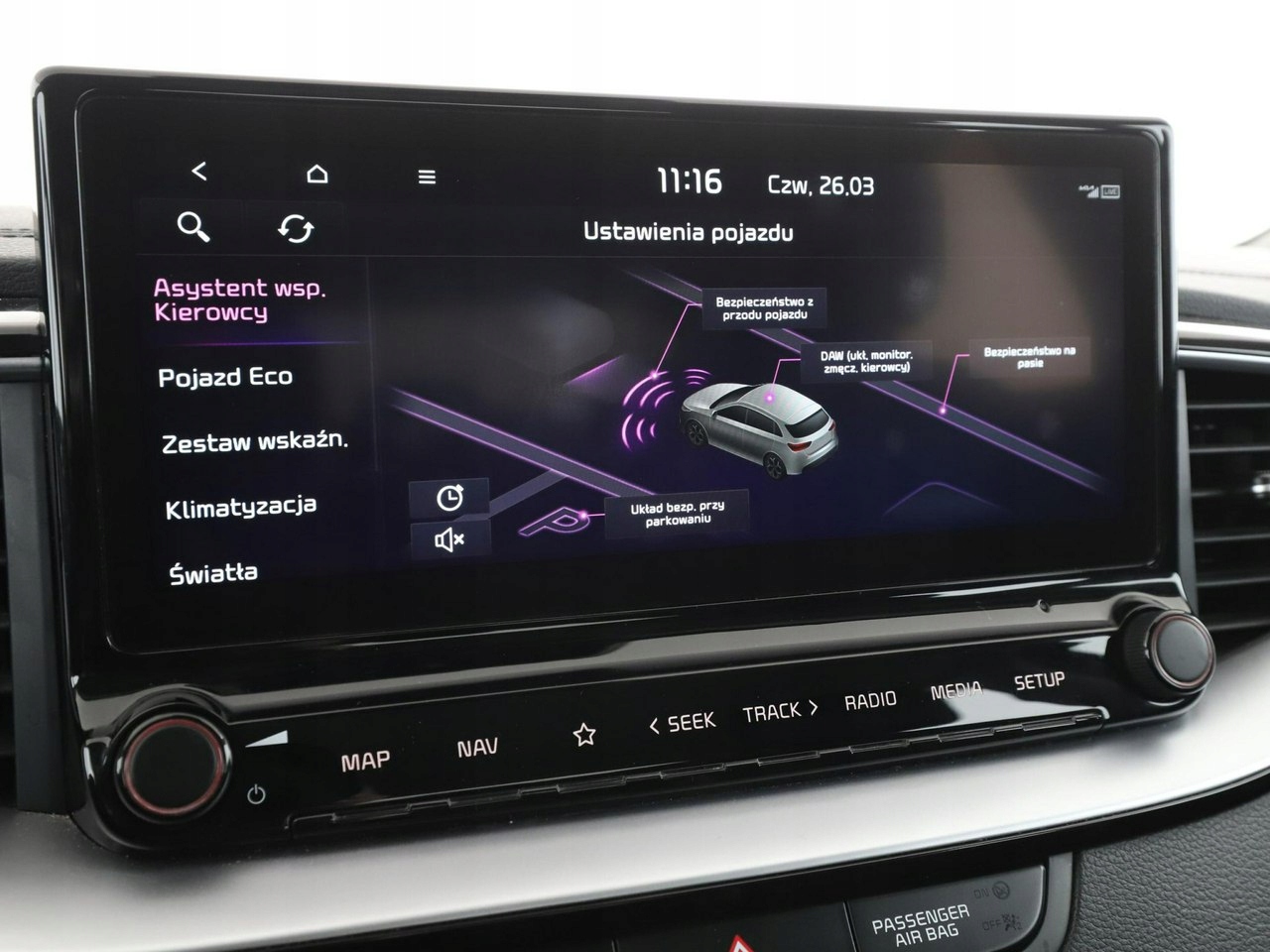 ABS, ASR (kontrola trakcji), Immobilizer, Asystent pasa ruchu, Poduszka powietrzna kierowcy, Poduszka powietrzna pasażera, ESP (stabilizacja toru jazdy), Isofix, Kamera cofania, Elektryczne szyby przednie, Elektryczne szyby tylne, Elektrycznie ustawiane lusterka, Wielofunkcyjna kierownica, Wspomaganie kierownicy, Tapicerka skórzana, Bluetooth, Gniazdo USB, Radio fabryczne, Nawigacja GPS, Centralny zamek, Komputer pokładowy, Tempomat, Łopatki zmiany biegów
