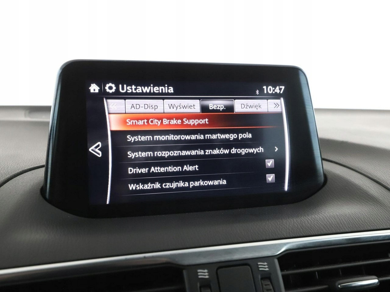 ABS, ASR (kontrola trakcji), Czujniki parkowania tylne, Immobilizer, Asystent pasa ruchu, Czujniki parkowania przednie, Poduszka powietrzna kierowcy, Poduszka powietrzna pasażera, Poduszki boczne przednie, ESP (stabilizacja toru jazdy), HUD (wyświetlacz przezierny), Isofix, Kamera cofania, Elektryczne szyby przednie, Elektryczne szyby tylne, Elektrycznie ustawiane lusterka, Podgrzewane przednie siedzenia, Przyciemniane szyby, Wielofunkcyjna kierownica, Wspomaganie kierownicy, Tapicerka tekstylna, Bluetooth, Gniazdo USB, Radio fabryczne, Nawigacja GPS, Centralny zamek, Komputer pokładowy, Tempomat, Elektrochromatyczne lusterko wsteczne, System Start-Stop
