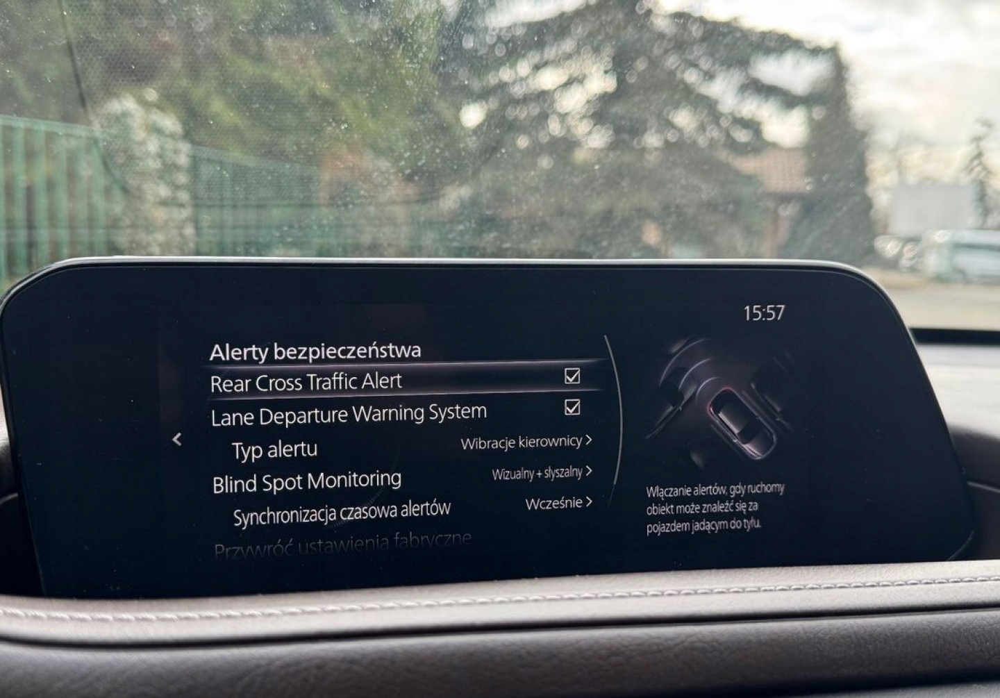 ABS, Alarm, ASR (kontrola trakcji), Asystent parkowania, Asystent pasa ruchu, Czujnik deszczu, Czujniki parkowania przednie, Czujniki parkowania tylne, Czujnik martwego pola, Czujnik zmierzchu, ESP (stabilizacja toru jazdy), HUD (wyświetlacz przezierny), Isofix, Kamera cofania, Kurtyny powietrzne, Poduszka powietrzna chroniąca kolana, Poduszka powietrzna kierowcy, Poduszka powietrzna pasażera, Poduszki boczne przednie, Elektryczne szyby przednie, Elektryczne szyby tylne, Elektrycznie ustawiane fotele, Elektrycznie ustawiane lusterka, Podgrzewana kierownica, Podgrzewane lusterka boczne, Podgrzewane przednie siedzenia, Podgrzewane tylne siedzenia, Przyciemniane szyby, Tapicerka skórzana, Wielofunkcyjna kierownica, Wspomaganie kierownicy, Skórzana kierownica, Bluetooth, Gniazdo USB, Nawigacja GPS, Radio fabryczne, Alufelgi, Bezkluczykowy dostęp, Elektrochromatyczne lusterka boczne, Łopatki zmiany biegów, Ogranicznik prędkości, System Start-Stop, Tempomat aktywny