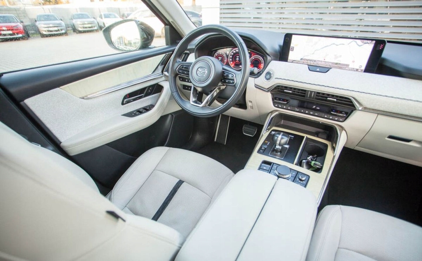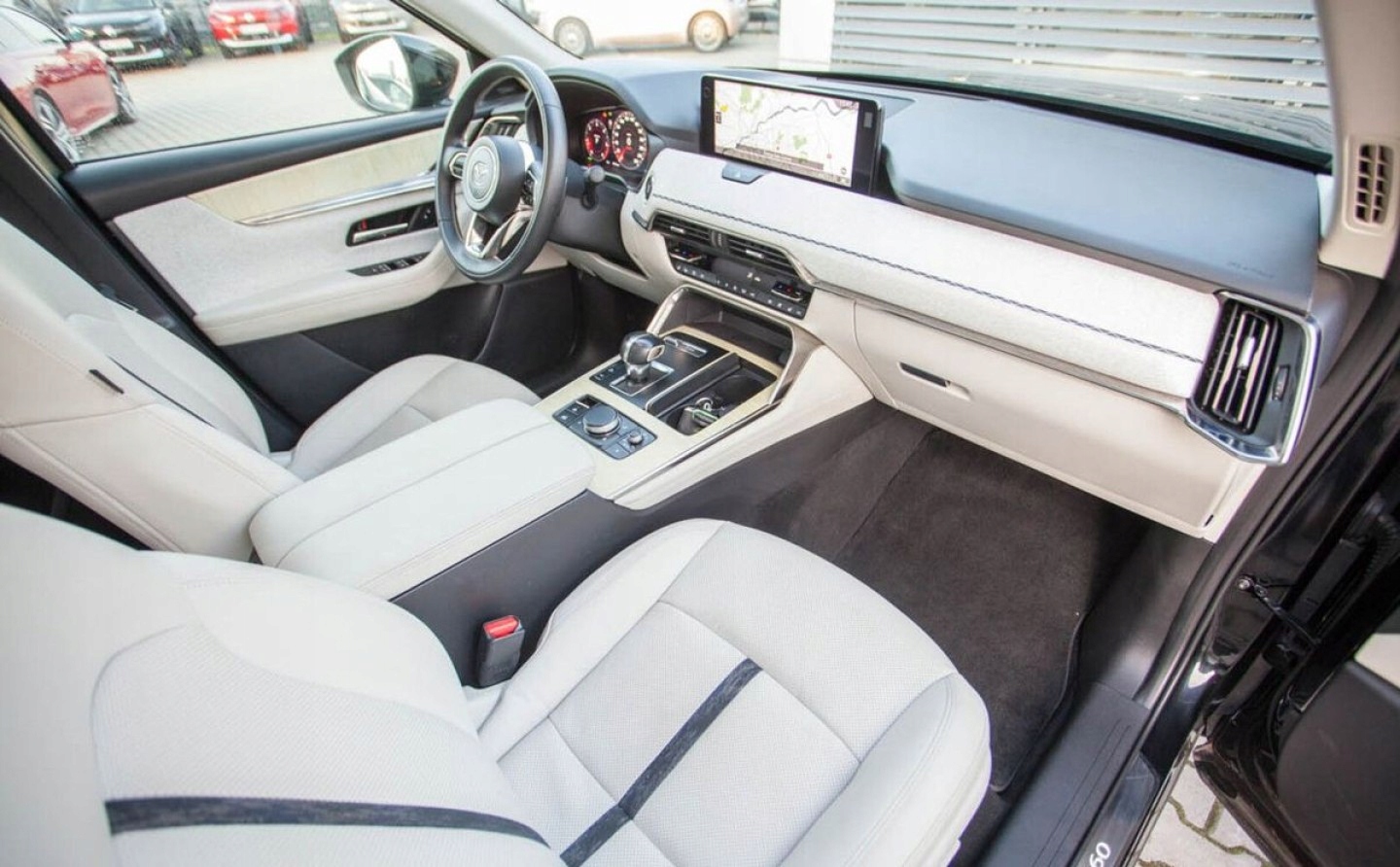 ABS, ASR (kontrola trakcji), Czujniki parkowania tylne, Czujnik martwego pola, ESP (stabilizacja toru jazdy), Isofix, Kamera cofania, Poduszka powietrzna pasażera, Poduszki boczne przednie, Elektryczne szyby przednie, Elektryczne szyby tylne, Elektrycznie ustawiane fotele, Elektrycznie ustawiane lusterka, Podgrzewane przednie siedzenia, Podgrzewane tylne siedzenia, Przyciemniane szyby, Tapicerka skórzana, Wspomaganie kierownicy, Bluetooth, Gniazdo USB, Nawigacja GPS, Radio fabryczne, Elektrochromatyczne lusterka boczne, Ogranicznik prędkości, System Start-Stop, Tempomat aktywny