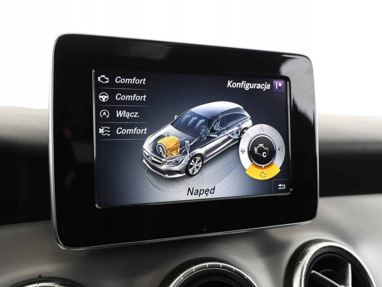 ABS, ASR (kontrola trakcji), Czujniki parkowania tylne, Immobilizer, Czujniki parkowania przednie, Poduszka powietrzna kierowcy, Poduszka powietrzna pasażera, Poduszki boczne przednie, ESP (stabilizacja toru jazdy), Isofix, Kamera cofania, Elektryczne szyby przednie, Elektryczne szyby tylne, Elektrycznie ustawiane lusterka, Podgrzewane przednie siedzenia, Przyciemniane szyby, Wielofunkcyjna kierownica, Wspomaganie kierownicy, Zawieszenie adaptacyjne, Tapicerka alcantara, CD, Radio fabryczne, Centralny zamek, Komputer pokładowy, Tempomat, Dach panoramiczny, System Start-Stop, Łopatki zmiany biegów