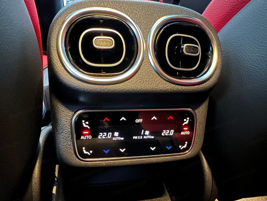 ABS, Immobilizer, Poduszka powietrzna kierowcy, Poduszka powietrzna pasażera, Alarm, Asystent pasa ruchu, Czujnik deszczu, Czujnik martwego pola, Czujniki parkowania przednie, Czujniki parkowania tylne, ESP (stabilizacja toru jazdy), HUD (wyświetlacz przezierny), Kamera cofania, Elektryczne szyby przednie, Elektrycznie ustawiane lusterka, Wspomaganie kierownicy, Elektryczne szyby tylne, Elektrycznie ustawiane fotele, Przyciemniane szyby, Tapicerka skórzana, Wielofunkcyjna kierownica, Radio fabryczne, Bluetooth, Gniazdo USB, MP3, Nawigacja GPS, Centralny zamek, Alufelgi, Dach panoramiczny, Komputer pokładowy, Ogranicznik prędkości, Tempomat