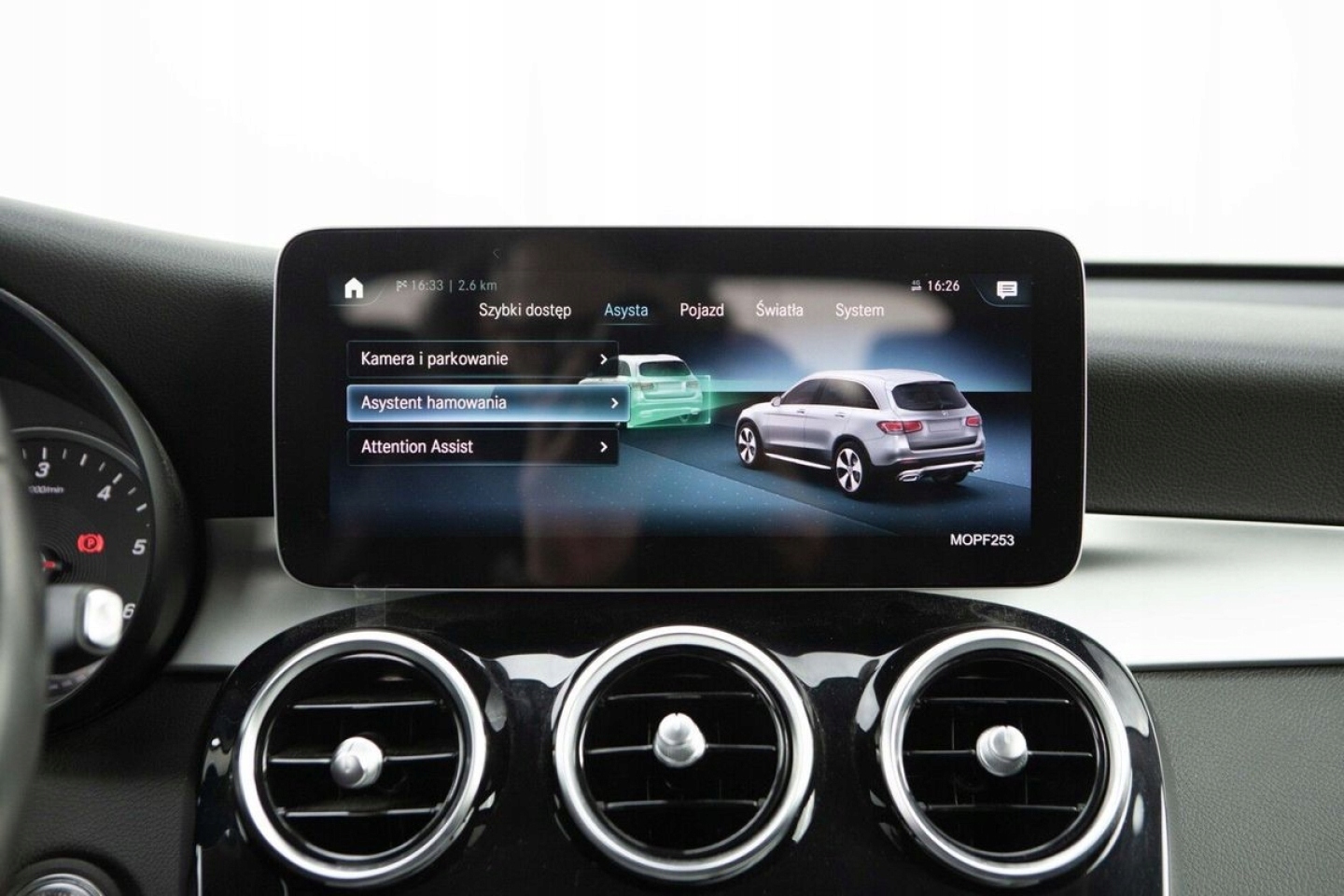 ABS, ASR (kontrola trakcji), Czujnik deszczu, Czujniki parkowania przednie, Czujniki parkowania tylne, Czujnik zmierzchu, ESP (stabilizacja toru jazdy), Isofix, Kamera cofania, Kurtyny powietrzne, Poduszka powietrzna chroniąca kolana, Poduszka powietrzna kierowcy, Poduszka powietrzna pasażera, Poduszki boczne przednie, Poduszki boczne tylne, Elektryczne szyby przednie, Elektryczne szyby tylne, Elektrycznie ustawiane lusterka, Przyciemniane szyby, Tapicerka skórzana, Wielofunkcyjna kierownica, Wspomaganie kierownicy, Skórzana kierownica, Bluetooth, Gniazdo USB, Nawigacja GPS, Radio fabryczne, Alufelgi, Bezkluczykowy dostęp, Elektrochromatyczne lusterka boczne, Łopatki zmiany biegów, System Start-Stop, Tempomat