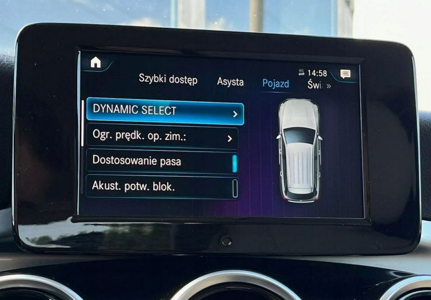 ABS, ASR (kontrola trakcji), Asystent parkowania, Asystent pasa ruchu, Czujnik deszczu, Czujniki parkowania przednie, Czujniki parkowania tylne, Czujnik zmierzchu, ESP (stabilizacja toru jazdy), Kamera cofania, Poduszka powietrzna chroniąca kolana, Poduszka powietrzna kierowcy, Poduszka powietrzna pasażera, Elektryczne szyby przednie, Elektryczne szyby tylne, Elektrycznie ustawiane lusterka, Podgrzewane lusterka boczne, Przyciemniane szyby, Tapicerka skórzana, Wielofunkcyjna kierownica, Wspomaganie kierownicy, Zawieszenie adaptacyjne, Skórzana kierownica, Bluetooth, Gniazdo USB, Nawigacja GPS, Alufelgi, Elektrochromatyczne lusterka boczne, Łopatki zmiany biegów, Ogranicznik prędkości, System Start-Stop, Tempomat aktywny