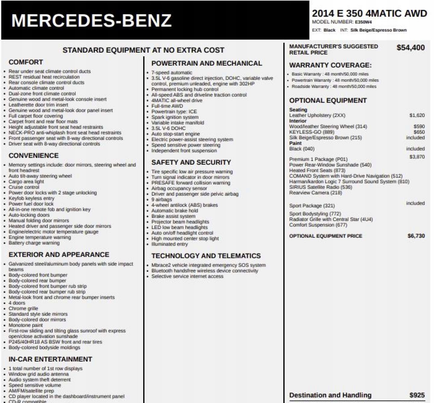 Mercedes-Benz Klasa E 2014 Mercedes-Benz E350 4Matic - KUPIONY w transporc