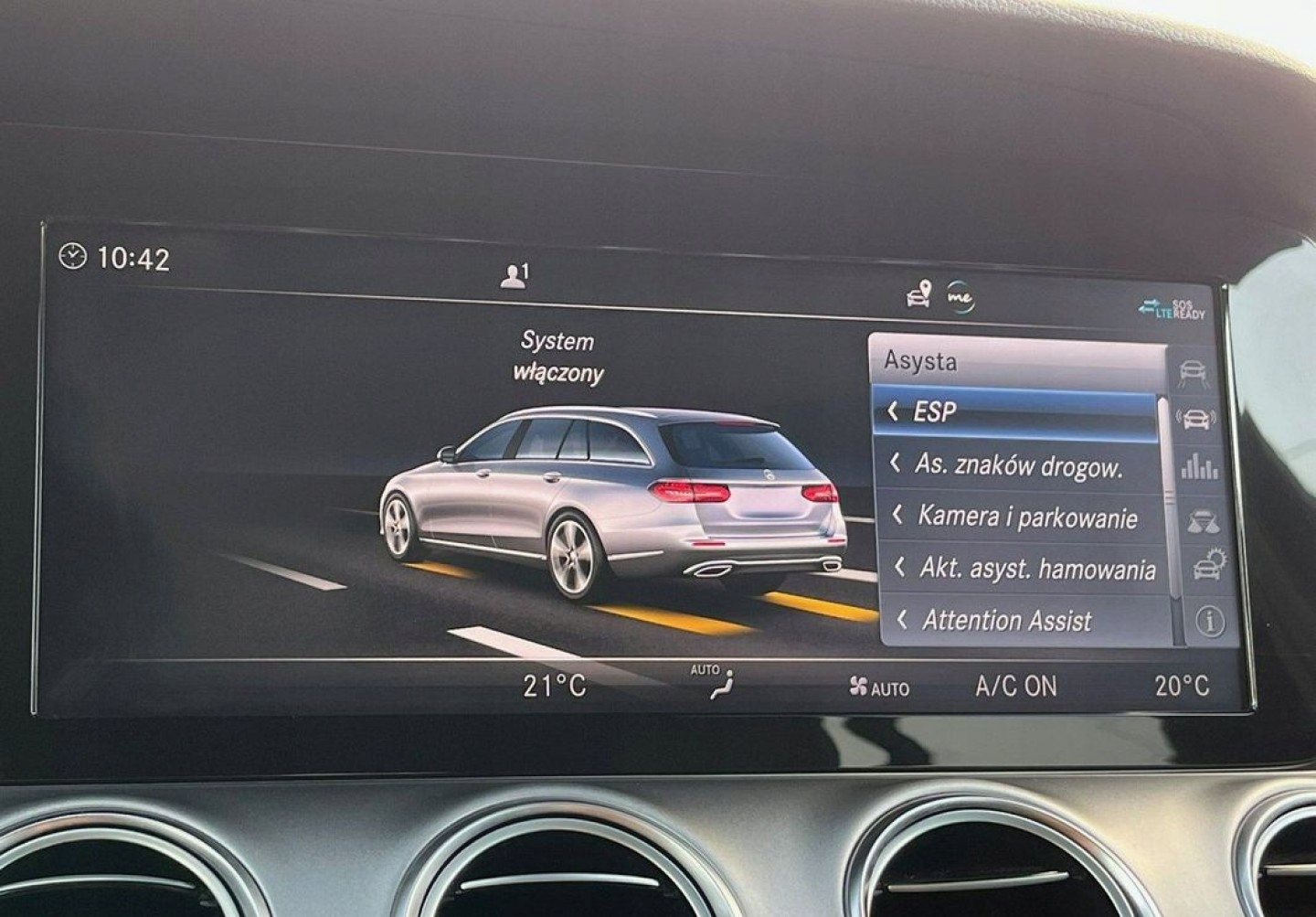 ABS, ASR (kontrola trakcji), Asystent pasa ruchu, Czujnik deszczu, Czujniki parkowania przednie, Czujniki parkowania tylne, Czujnik martwego pola, Czujnik zmierzchu, ESP (stabilizacja toru jazdy), Kamera cofania, Poduszka powietrzna chroniąca kolana, Poduszka powietrzna kierowcy, Poduszka powietrzna pasażera, Poduszki boczne przednie, Poduszki boczne tylne, Elektryczne szyby przednie, Elektryczne szyby tylne, Elektrycznie ustawiane fotele, Elektrycznie ustawiane lusterka, Podgrzewane lusterka boczne, Podgrzewane przednie siedzenia, Podgrzewane tylne siedzenia, Przyciemniane szyby, Tapicerka skórzana, Wielofunkcyjna kierownica, Zawieszenie adaptacyjne, Skórzana kierownica, Bluetooth, Gniazdo USB, Nawigacja GPS, Radio fabryczne, Alufelgi, Elektrochromatyczne lusterka boczne, Ogranicznik prędkości, System Start-Stop, Tempomat aktywny