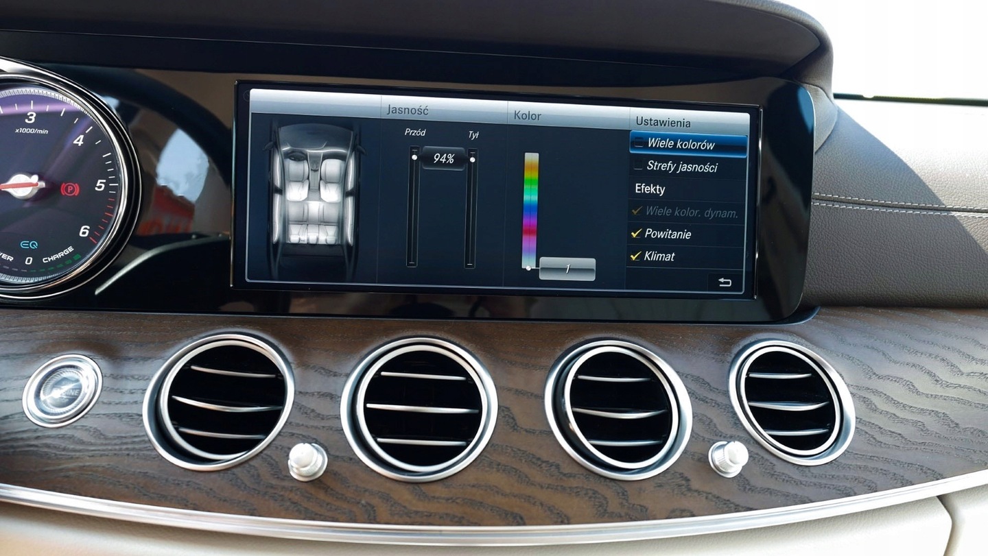ASR (kontrola trakcji), Asystent parkowania, Asystent pasa ruchu, Czujnik deszczu, Czujniki parkowania przednie, Czujniki parkowania tylne, Czujnik martwego pola, Czujnik zmierzchu, ESP (stabilizacja toru jazdy), Isofix, Kamera cofania, Kurtyny powietrzne, Poduszka powietrzna chroniąca kolana, Elektrycznie ustawiane fotele, Elektrycznie ustawiane lusterka, Ogrzewanie postojowe, Podgrzewane lusterka boczne, Podgrzewane przednie siedzenia, Przyciemniane szyby, Skórzana kierownica, Tapicerka jasna, Tapicerka skórzana, Wielofunkcyjna kierownica, Zawieszenie adaptacyjne, Bluetooth, Gniazdo USB, MP3, Nawigacja GPS, Alufelgi, Elektrochromatyczne lusterka boczne, Elektrochromatyczne lusterko wsteczne, Komputer pokładowy, Łopatki zmiany biegów, Ogranicznik prędkości, Otwieranie pilotem, Relingi dachowe, Tempomat aktywny